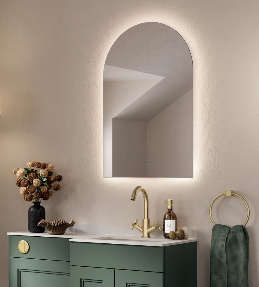 Arch shaped mirrors are a simple way to create interest and add impact in your bathroom design.