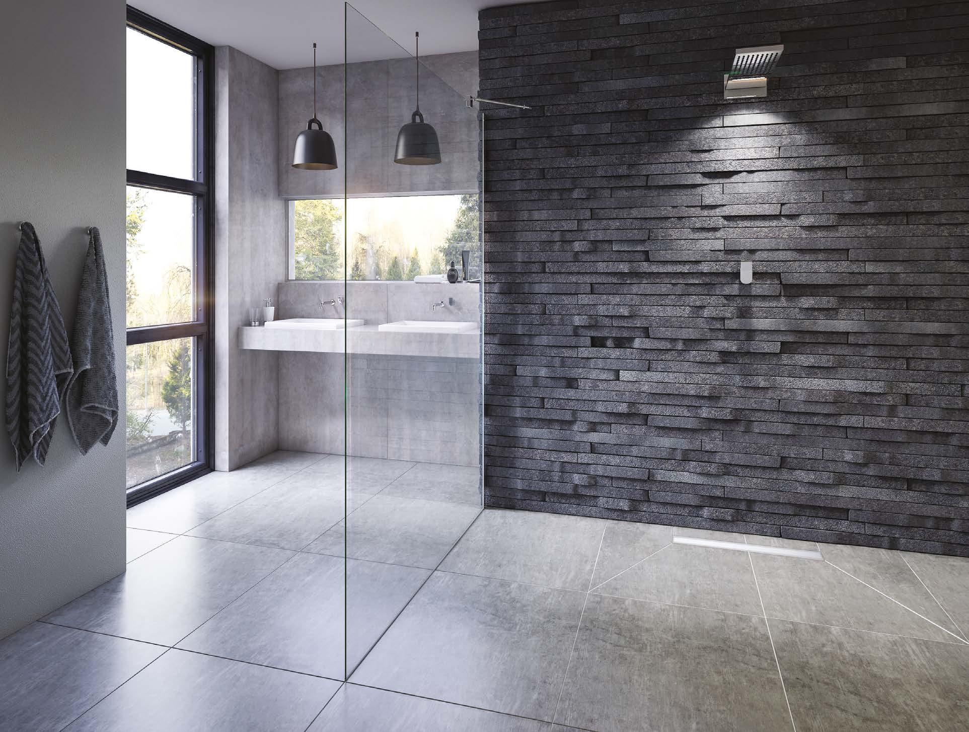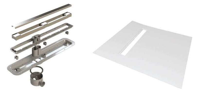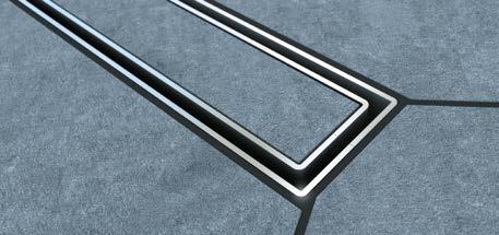 The construction of the Linear 2 wetroom floor former means there is no need to mitre the tiles in the corners. High-quality stainless steel inserts are available to finish the tile edges, which can be either flush to a wall or covered with a wetroom glass panel. The Aqua-Dec Linear 2 is 22mm thick and can be installed on timber or concrete floors, providing flow rates of 40l/min. The Aqua-Dec Linear 2 is supplied with a gravity waste.