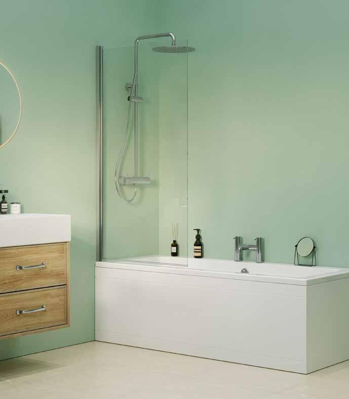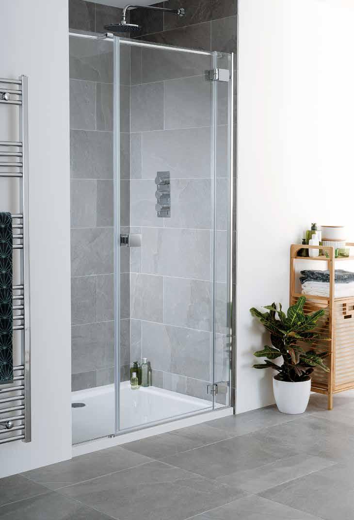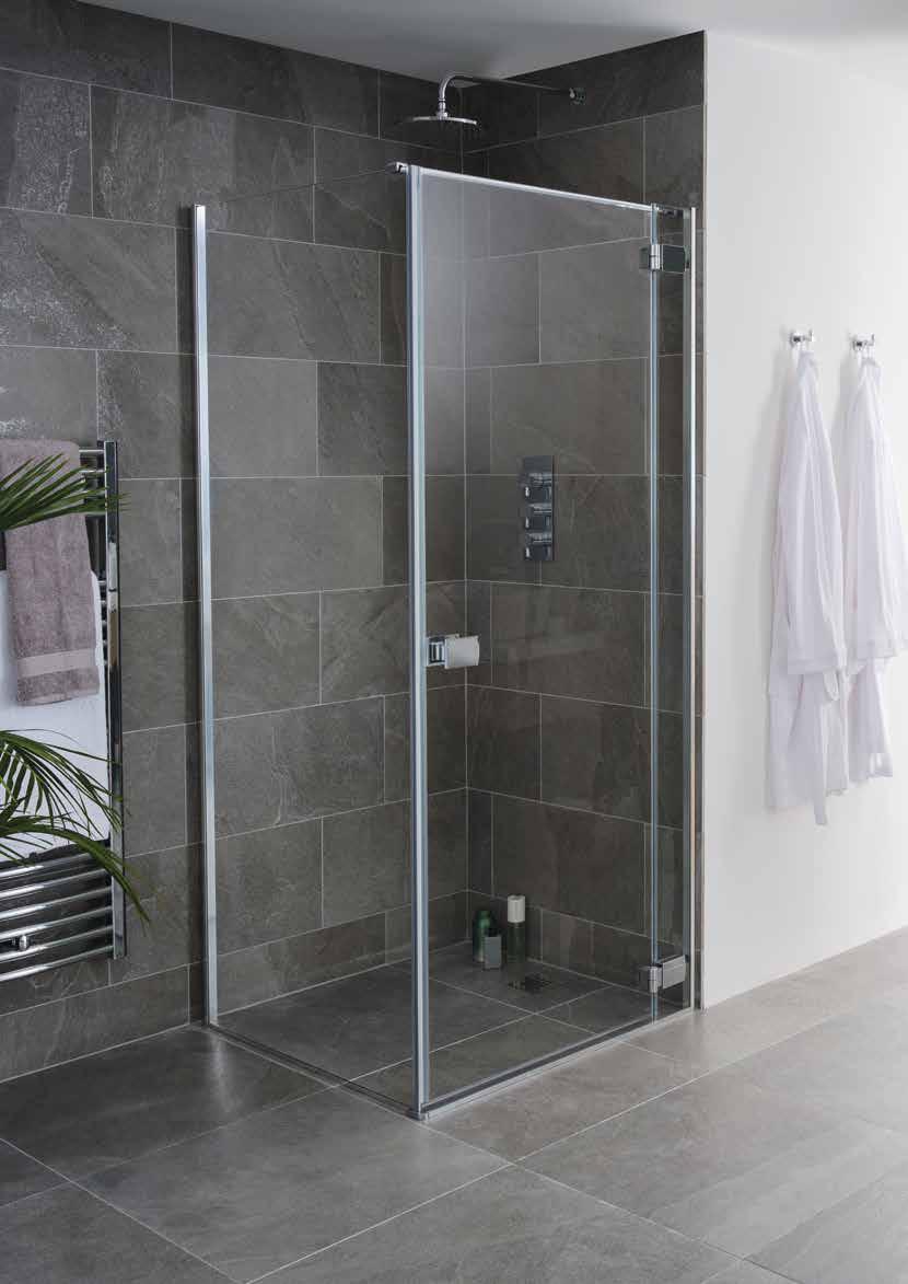 Using one main fixed front panel on a floor substrate allows homeowners the flexibility to design a personalised and contemporary showering space and choose from one of six colour finishes. For added luxury [and keep the water within the showering area], add a fixed or hinged deflector panel.