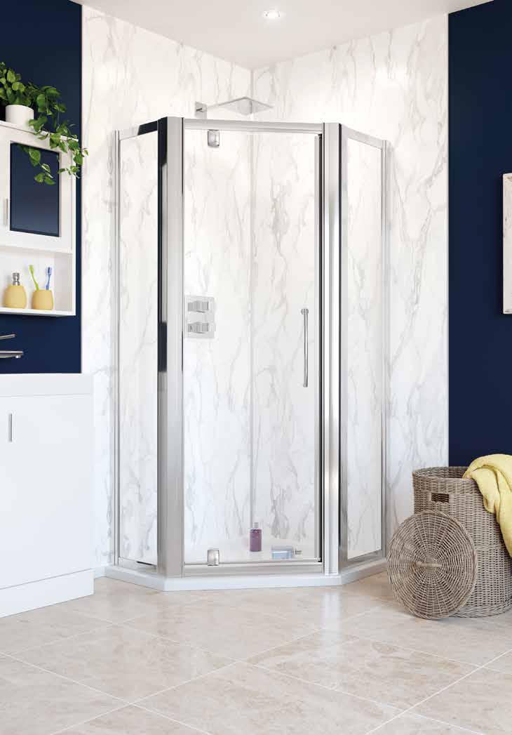 Perfect for where space might prevent using a conventional corner unit, this practical semi-framed pentagon can be fitted with your choice of bi-fold or pivot door. from £947.63 incl. VAT