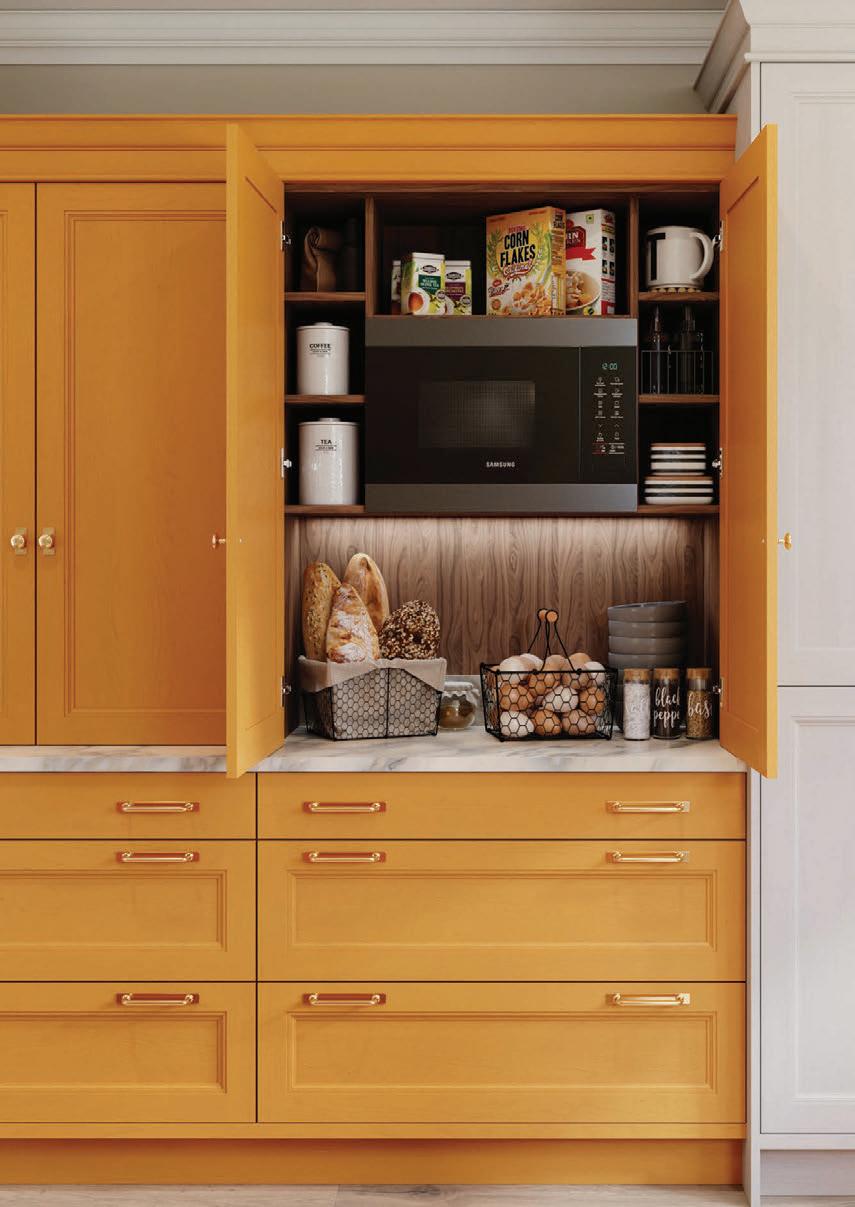 Butler's Pantry includes space for a built-in microwave. Featured here are our new and improved spice racks.