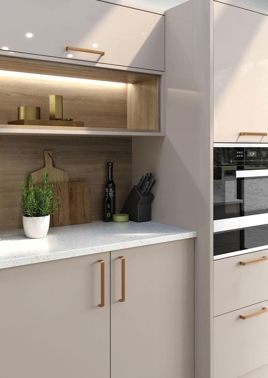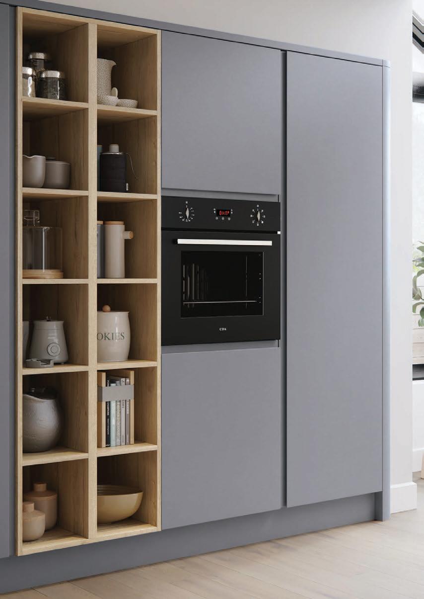 A range of accessory panels and made to measure open shelving in our Eterna and Solutions finishes. Offering you a natural contrast to modern door finishes, whether your kitchen choice is matt, gloss, cream, mussel, white or any of the shades of grey, you can include Solutions. Create open shelves and bespoke units that are seen in the most contemporary rooms to produce that finishing touch.
