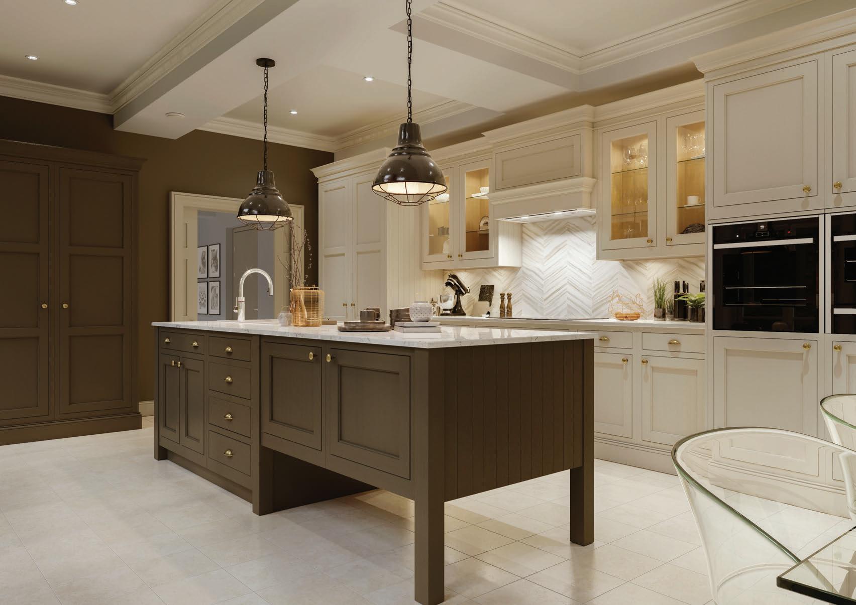 modular pilasters on the corners of the island is particularly effective, with doors instead of panels maintaining the seamless inframe effect.