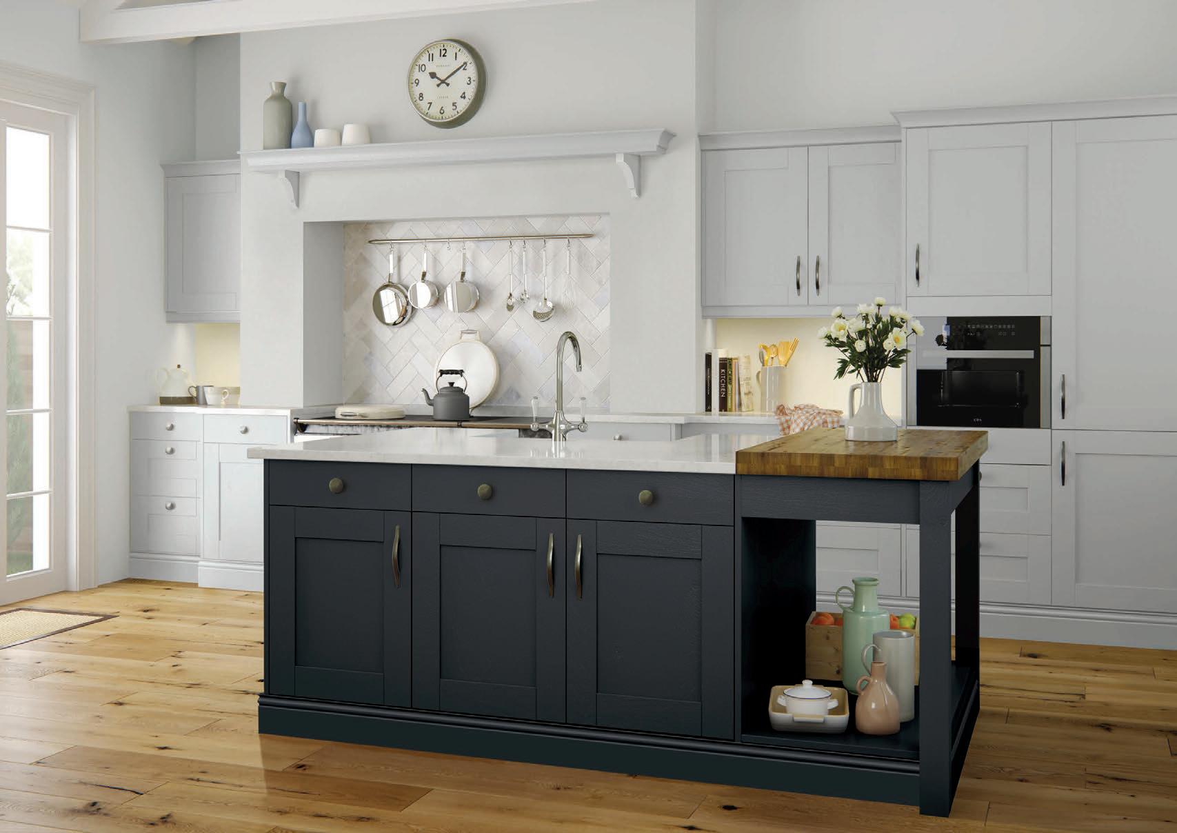 A solid timber narrow framed shaker door with a veneered centre panel, Elswick brings a richness to the kitchen. Available in 33 stunning finishes, from cool greys to daring blues and purples.