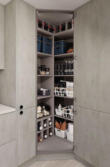 Our diagonal corner larder makes even better use of space and is now also available in extra tall height as shown here.