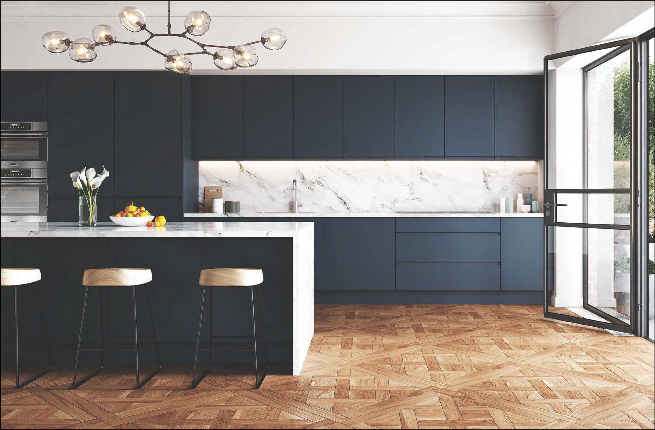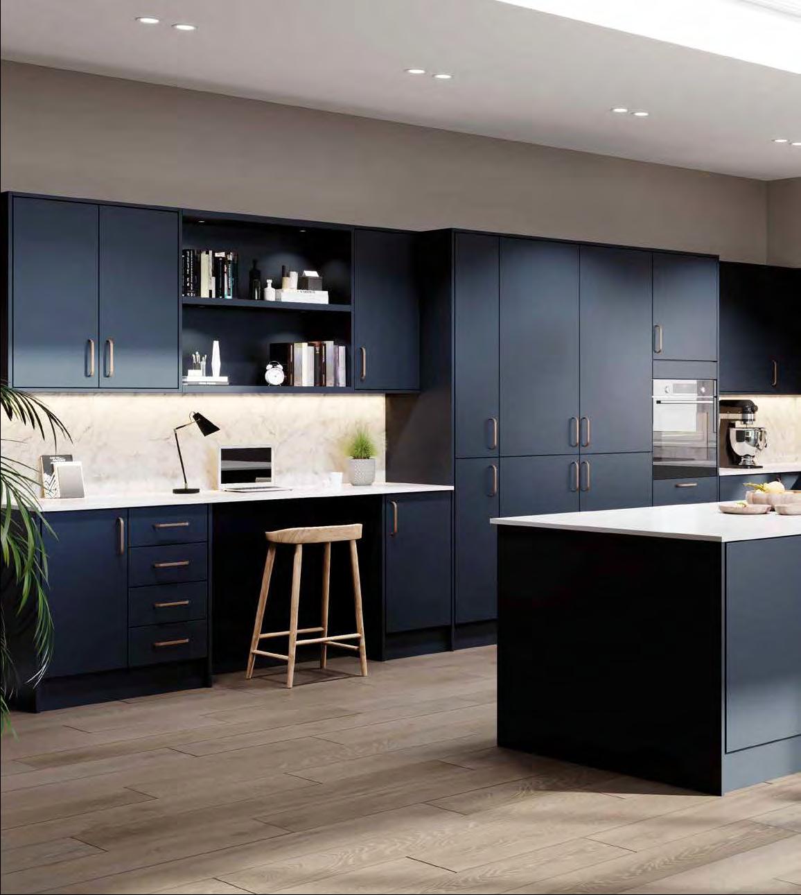 Introducing our clever handleless range, available in an elegant matt finish that adds depth and decadence to your space.
