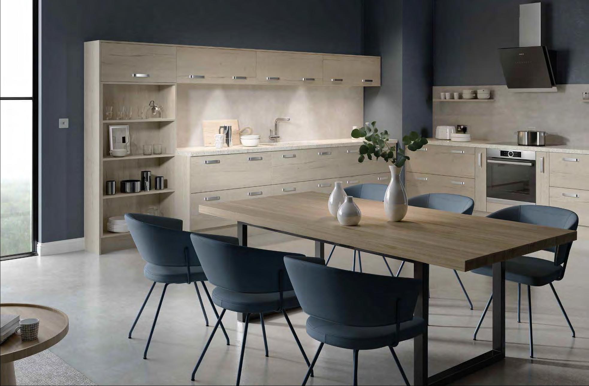 For a truly European feel, combine the textures of the Linear range with our handleless rail system to create a minimal feel that also projects warmth and character.