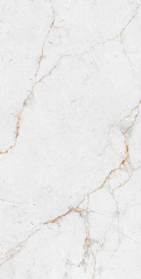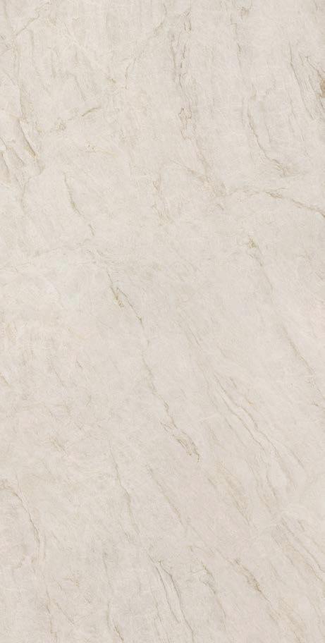 The inspiration for this model comes from classic white marble; in this case, featuring golden grayish veins on an off-white background. It’s offered in Décor Polished and Silk finishes. This last finish simulates the effect of an eroded surface in line with a golden vein design for a more natural look.
