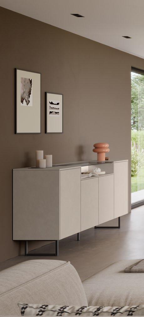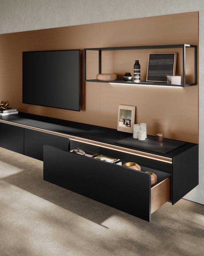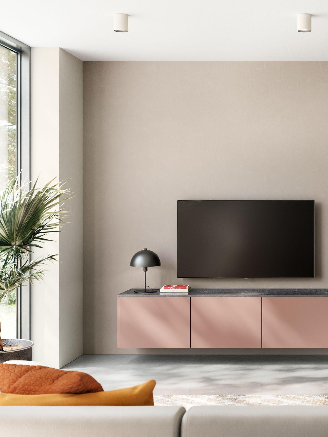 Make life more creative at home! Most wonderfully embodied by the elegant lowboard in the stylish coral colour, the aesthetic interplay between closed and open elements is sure to turn heads. Versatile and open to all things decorative, a spacious shelving system made from black steel boasts integrated lighting for extraordinary light effects.