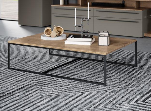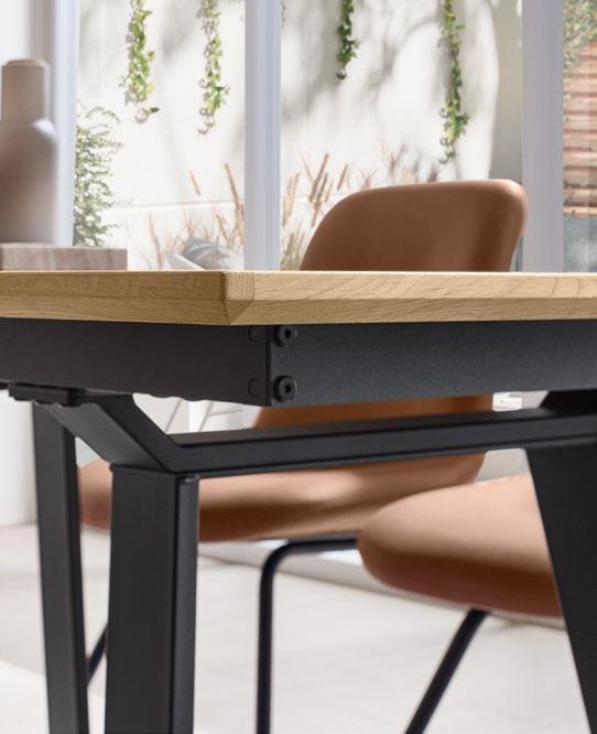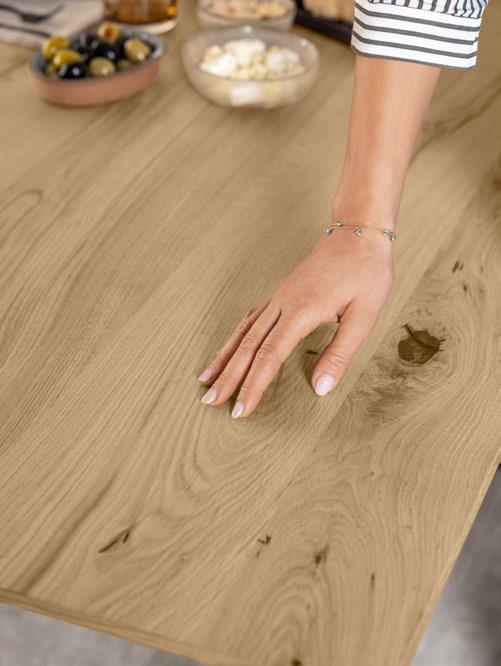 Furnierte Tischplatte in Native Oak mit elegantem Maserungsverlauf sowie stilvoller Schweizer Kante. Veneer table top in Native Oak with elegant grain pattern and stylish Swiss edge.