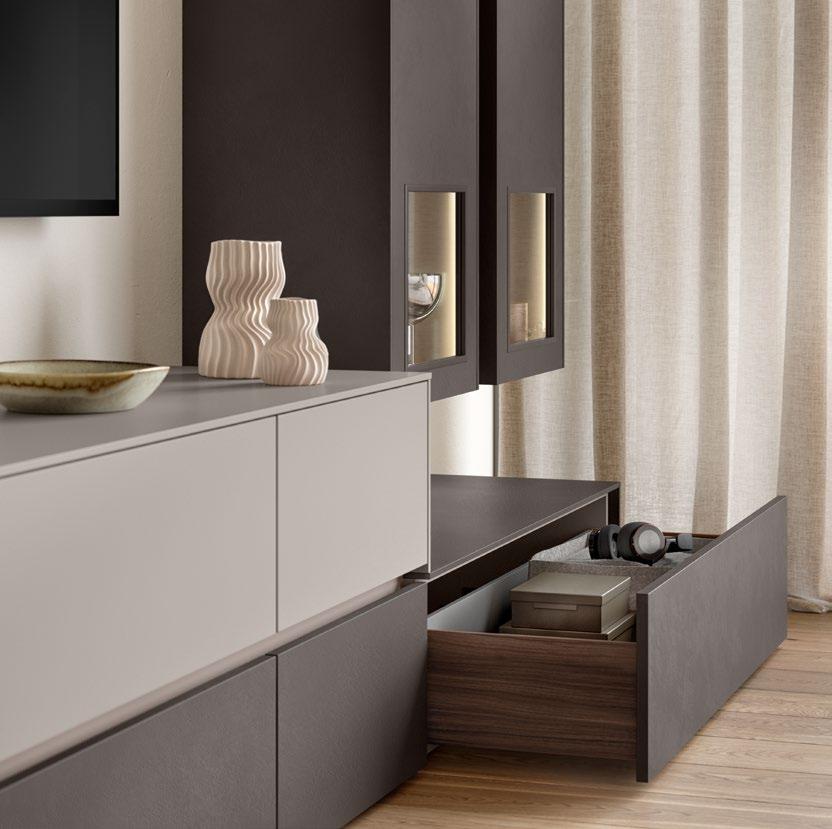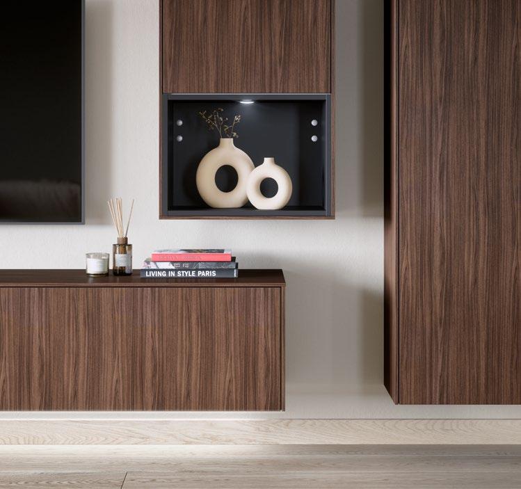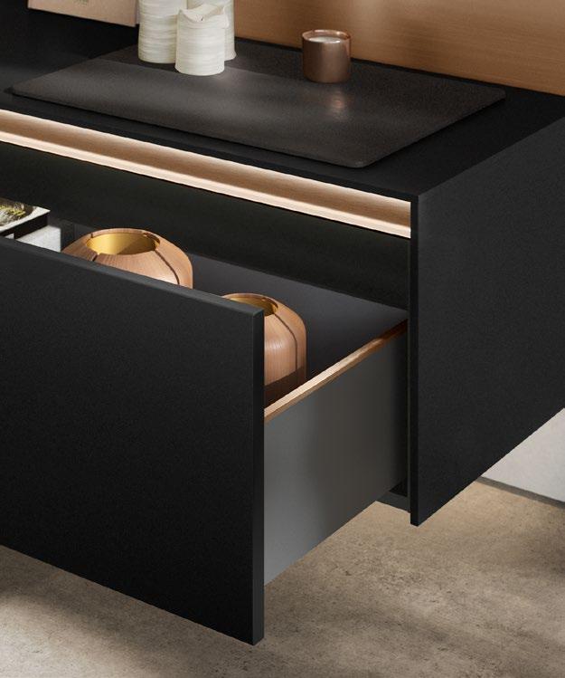 From warm wood décors to mirrors for additional room depth, the back wall concept can be perfectly matched to the respective front colour and look, creating harmonious transitions and deliberate contrasts –for individual looks with a clean design idiom.