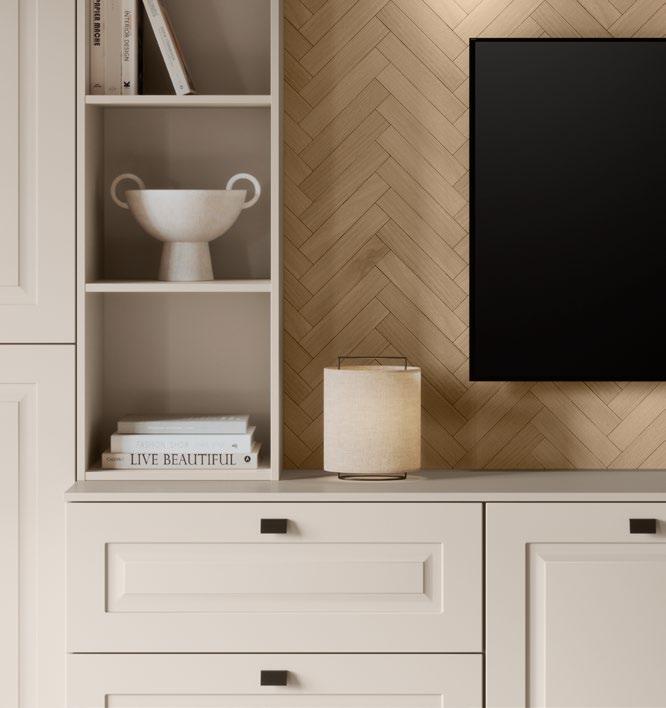 The combination of handleless fronts in light macchiato and the refined back panel concept in Sierra oak creates a calming atmosphere in a Scandinavian style. A subtle and stylish contrast that maximises comfort in a captivating way.