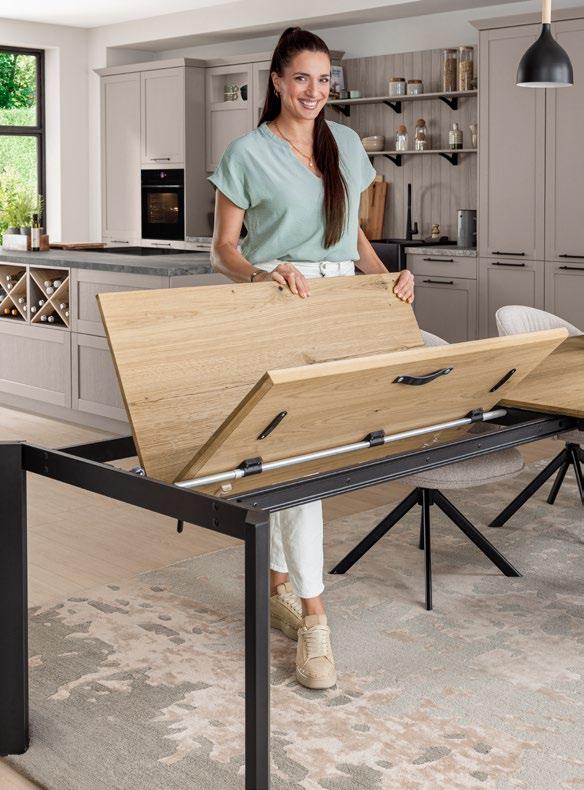 Our new butterfly pull-out mechanism for four-foot table frames impresses with its elegant motion and allows the tabletop to be quickly and easily expanded.