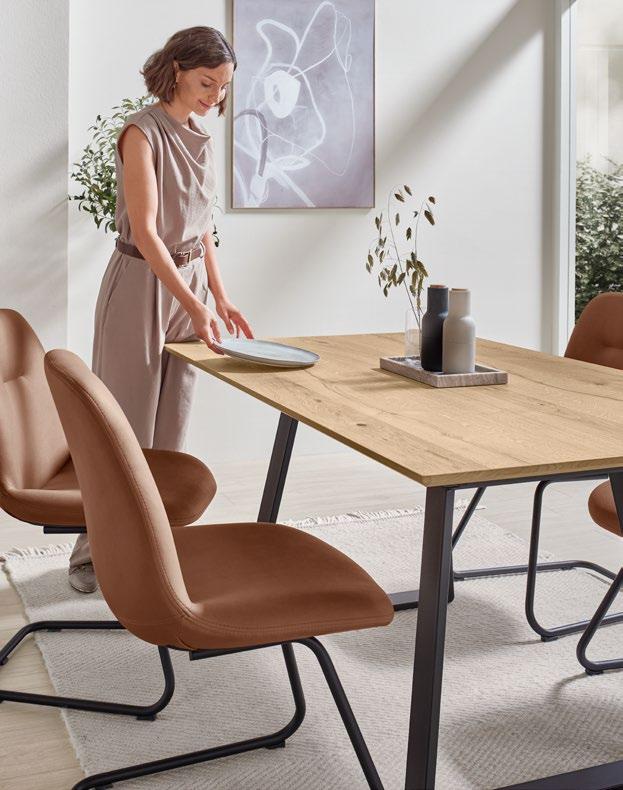 Genussmomente: Zuhause jeden Tag genießen mit unseren neuen Esstischen und den passenden Polsterstühlen und -sesseln.