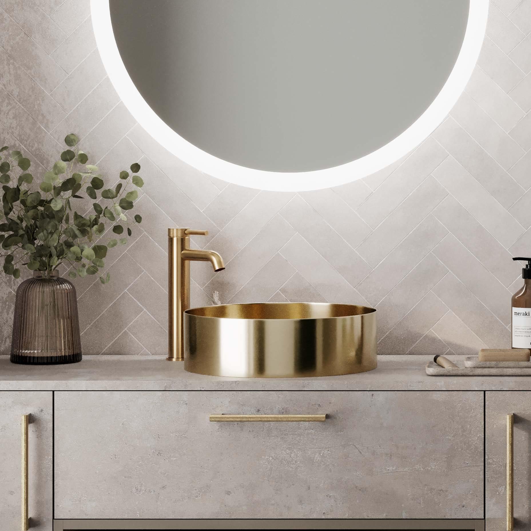 For example, Mirrors, Brassware, Accessories, Handles, Radiators, Shower Valves & Shower Enclosures are available in Brushed Brass.