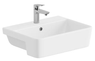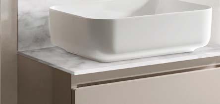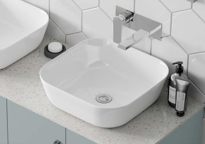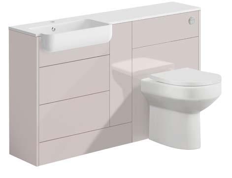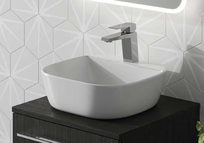Three of our popular colours are now available as basins - Matt Antique Rose, Matt Parisian Blue & Stone Matt. The distinctive curves of the basin contrast stylishly with the inset, geometric lines of the white units.