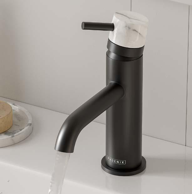 Combining the matt finishes of Black and Brushed Bronze and five handle choices to create a striking look. This full range of stylish brassware will lift the aesthetic of your modern bathroom.