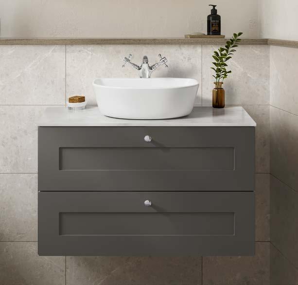 Our deeper wall mounted units offer more bespoke design opportunities with 3 door styles and several colours. Choose from twin drawer or door and a stylish Basin or Worktop to complete the look.