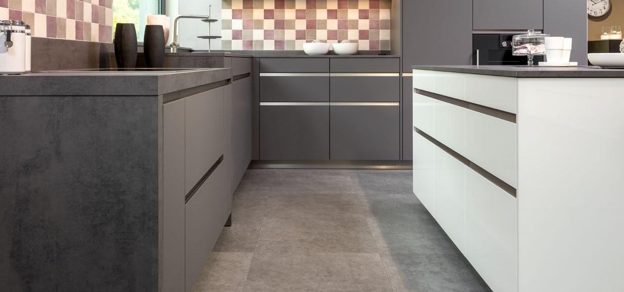 Cooking can be so relaxing: Thanks to the calm colour scheme of the surfaces in different shades of grey, a pleasant feel-good atmosphere unfolds. The kitchen island structures the room and the processes. The anti-fingerprint surface makes cleaning a breeze. Variably arranged handle strips give scope for design.