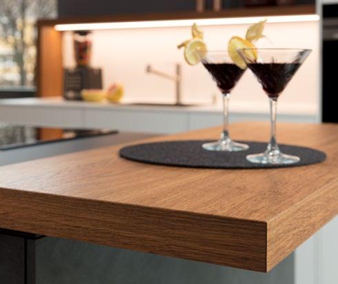 Wohnen, essen, kochen und pausieren –alles in Einem. Für das Gelingen dieses Zusammenspiels sorgen hochwertig mit Kunstharz beschichtete Oberflächen. Klassiker, die durch Strapazierfähigkeit, Langlebigkeit und Ästhetik aus der Küchenwelt nicht wegzudenken sind. Das Programm X-Line mit abgeschrägten Fronten ist ein besonderer Augenschmaus. Die dahinterliegende, korpusbündige Blende kann unabhängig von der Frontfarbe gewählt werden. So wird die Küche zu einem echten Unikat.
