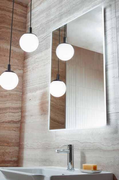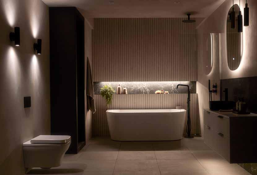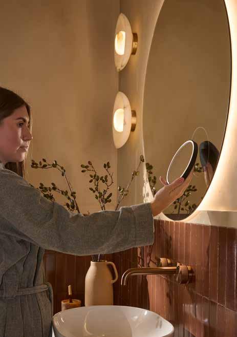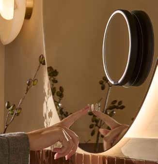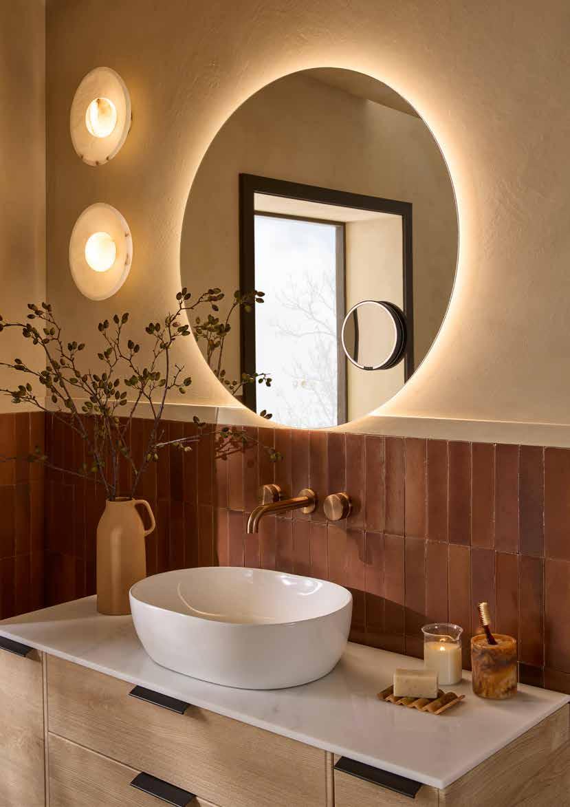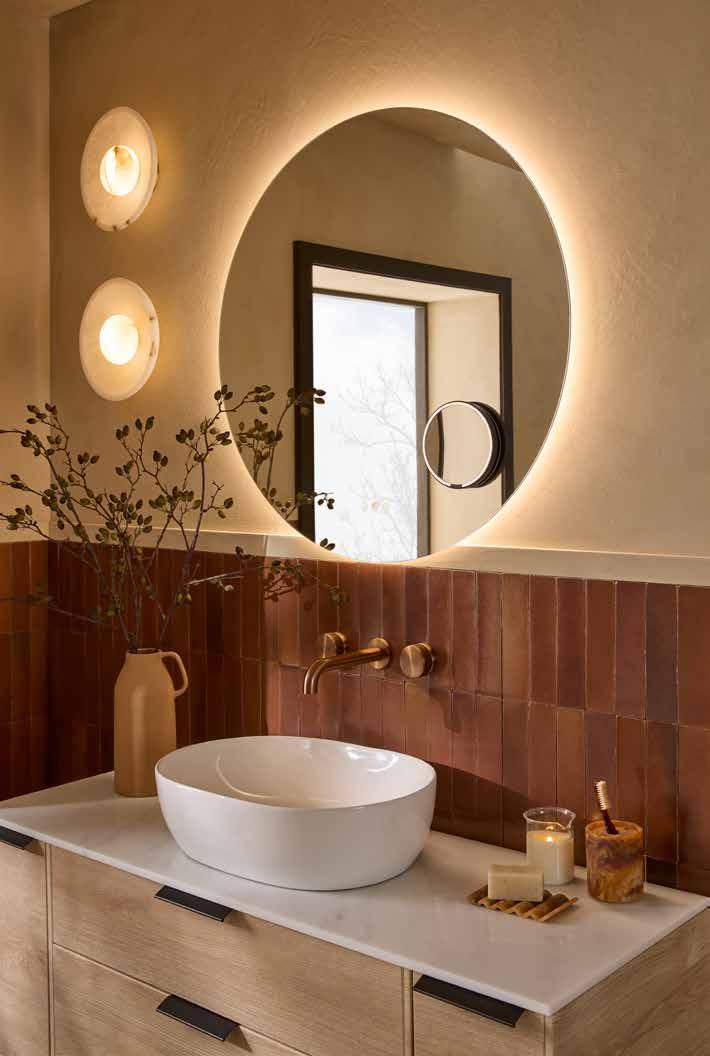 ‘Focus on sustainable, artisanal and tactical surfaces with warm, ambient lighting that creates a spa-like mood by using task lighting and subtle accent illumination.’