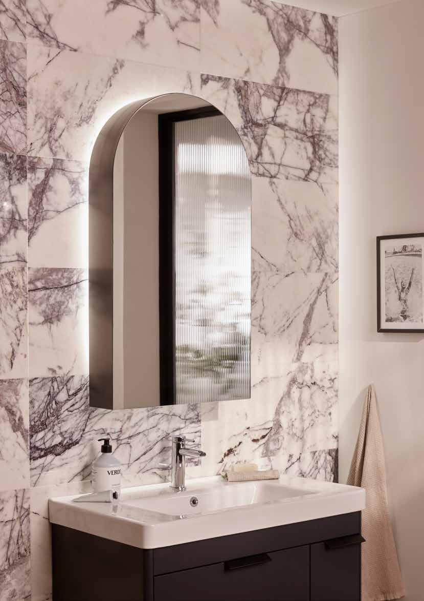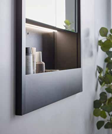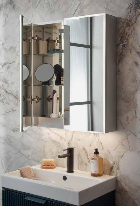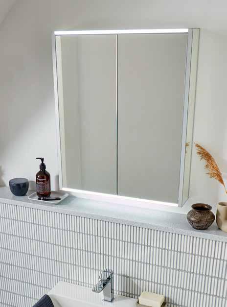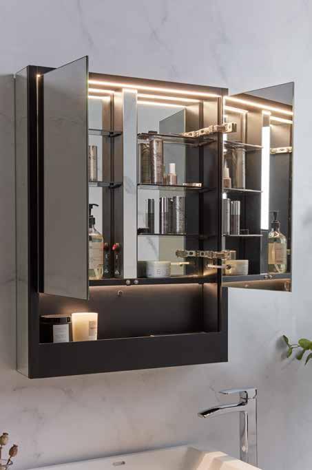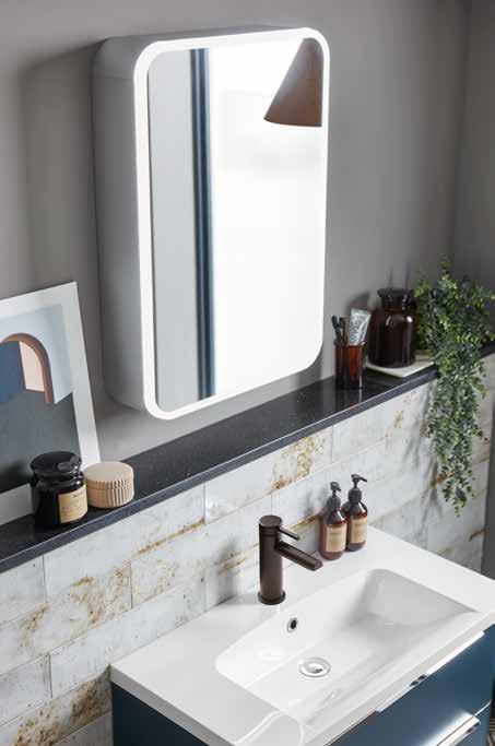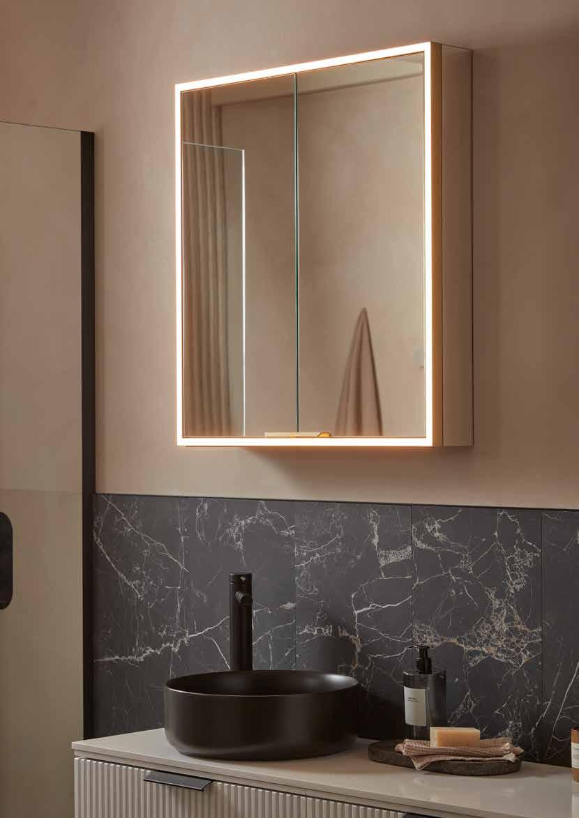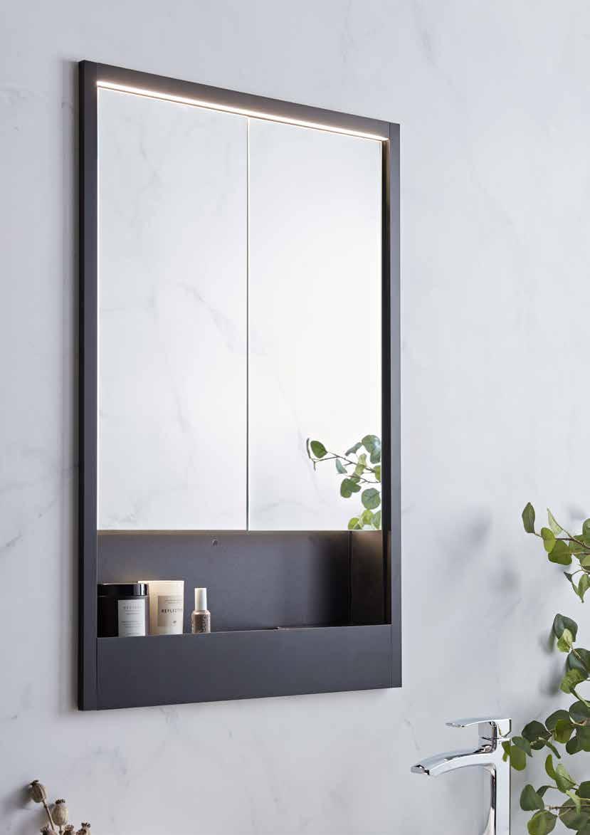 Give your bathroom a modern edge and save space at the same time with one of our stylish recessible cabinets. Opt for the customisable Vault (page 70) or the on-trend black finish Boost (page 78),