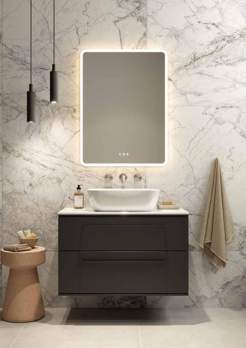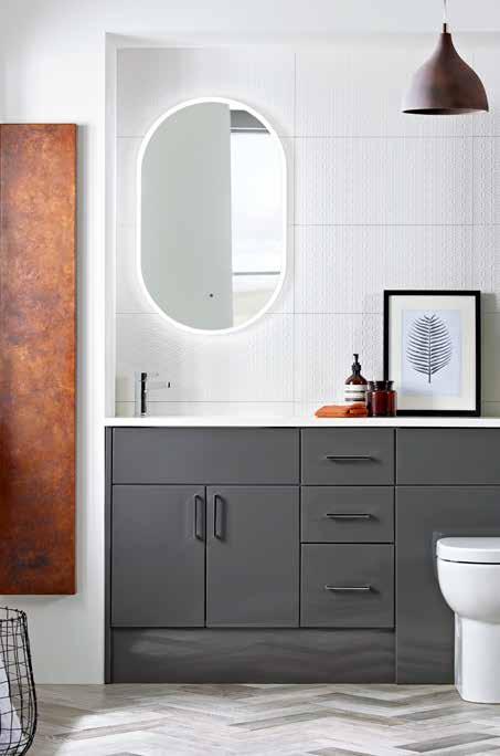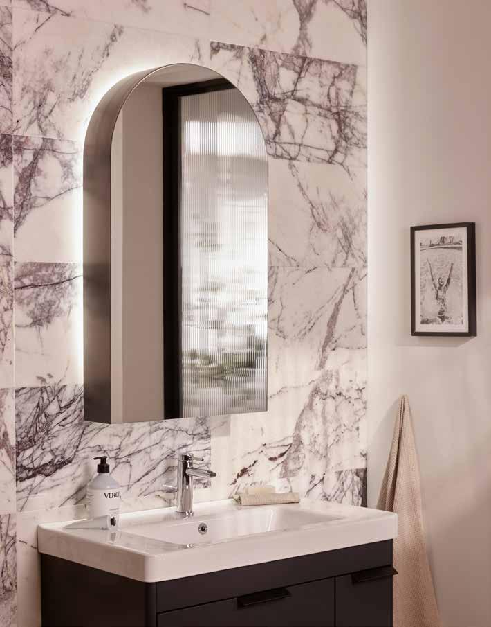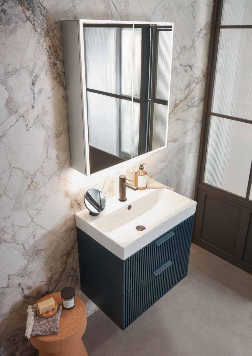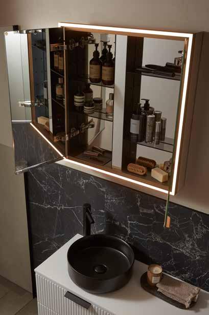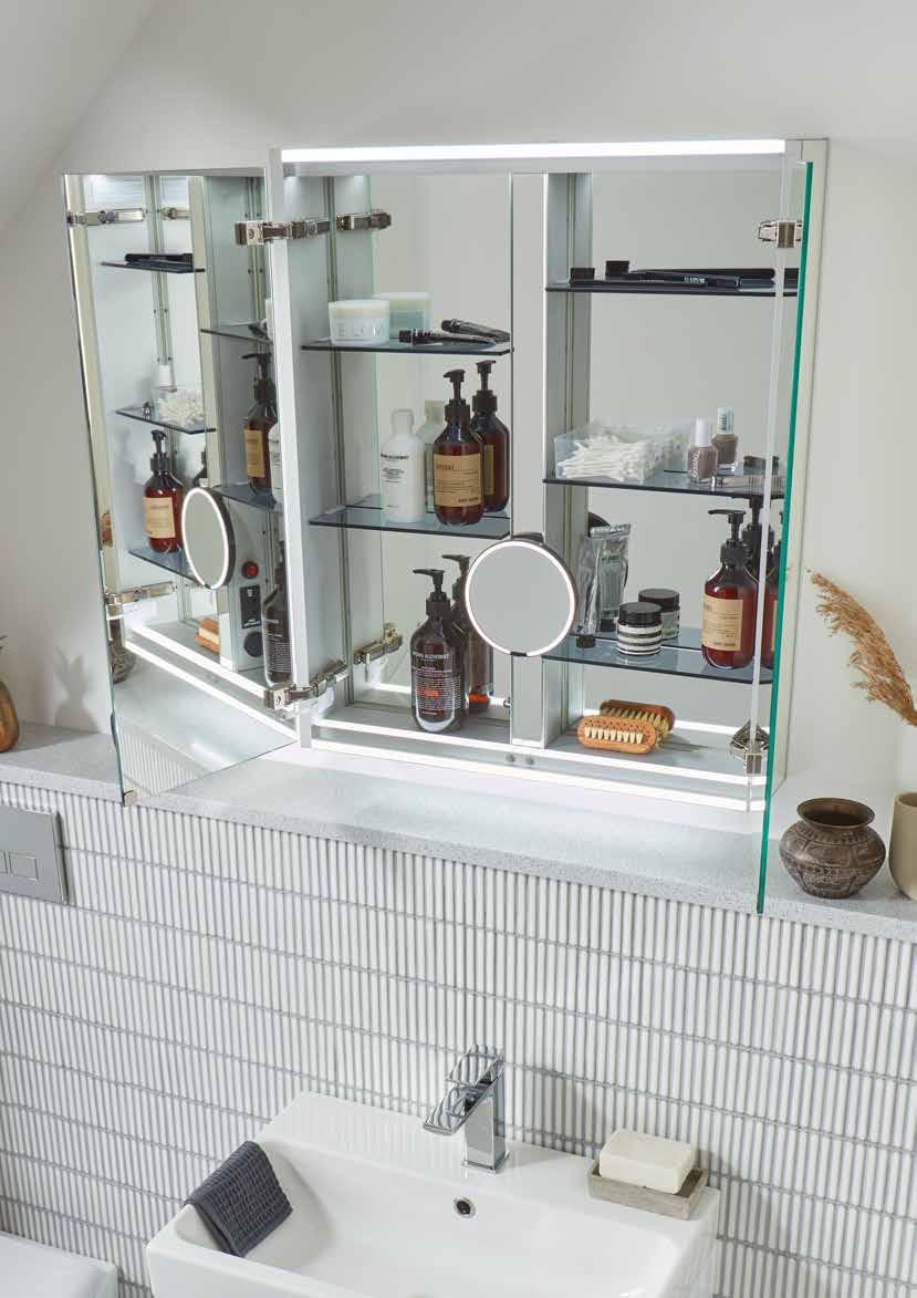 Give your bathroom a modern edge and save space at the same time with one of our stylish recessible cabinets. Opt for the customisable Vault (page 70) or the on-trend black finish Boost (page 78),