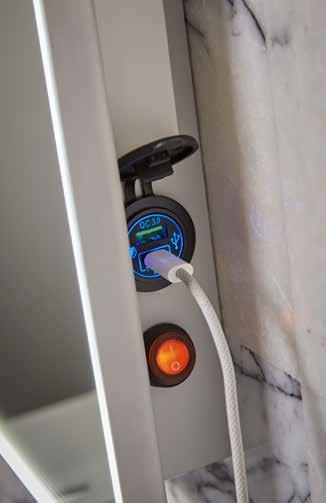 Conveniently positioned, this charging socket keeps your electric toothbrush or shaver fully charged