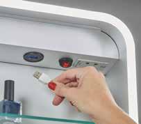 Discover true convenience with our range of charging enabled mirrors and cabinets. Sleekly designed hidden sockets are perfect for tooth brushes or razors. Plus, wireless charging is available in our Boost cabinet (page 78), perfect for charging your phone when you’re busy getting ready.