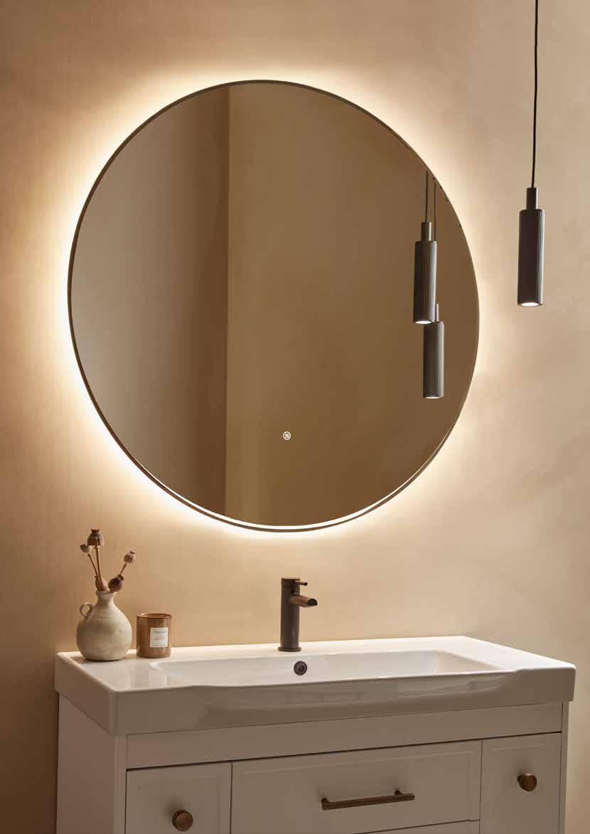 Our mirror collection ranges from elegant pill shapes to eye catching arch designs, our mirrors include many features including industry leading ghost glass technology and are available in a variety of finishes - from classic black to luxurious brushed bronze.