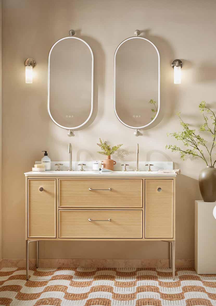 A well-chosen mirror is key to creating a spa-like feel—it opens the space, reflects natural light, and adds to the calm environment. Whether you choose soft curves and organic silhouettes to gently soften the room, or the sleek elegance of frameless and backlit designs for an ambient glow, the mirror is a key element in creating a space that feels both functional and deeply relaxing.