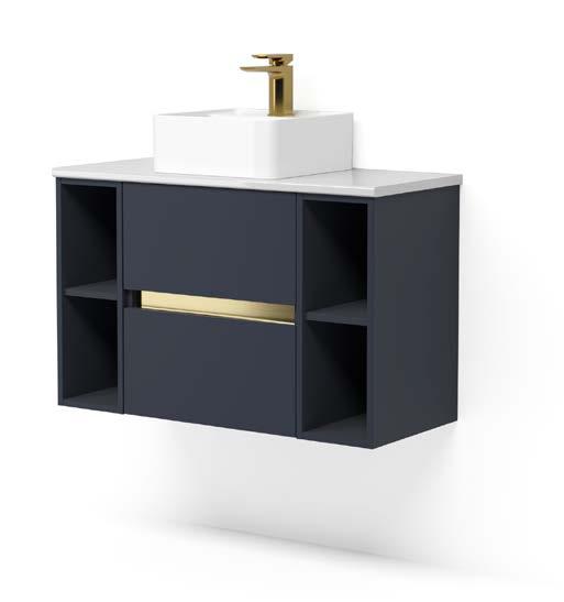 For a contemporary look, Qube Wall Mounted furniture can be customised with open shelf storage and a choice of basins.