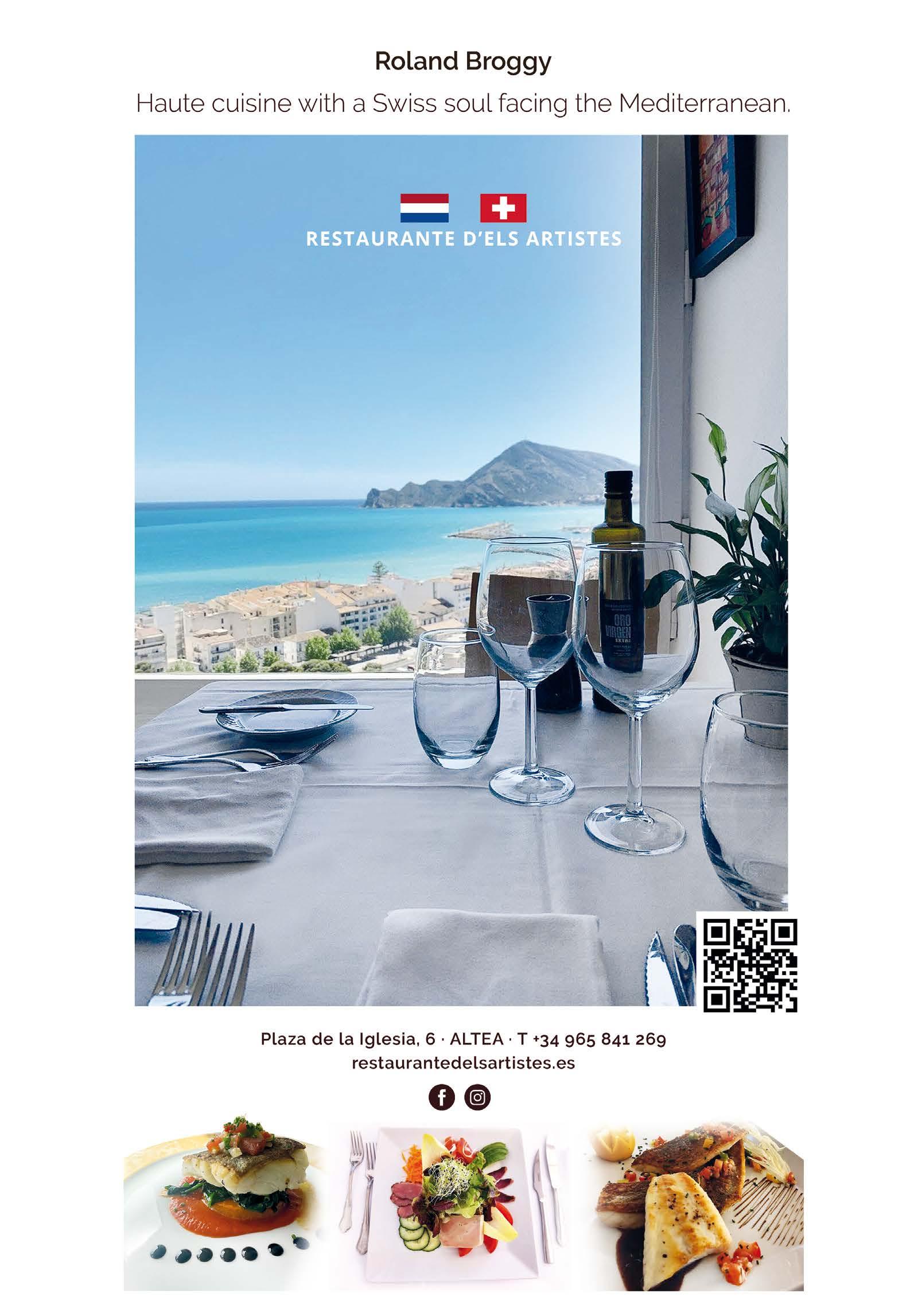 Select atmosphere and specialties that do not disappoint, prepared by the prestigious Swiss Chef Roland Broggi, highlighting fish and meats without forgetting the delicious desserts! Pl. de l’Església, 6 – ALTEA T +34 965 841 269 restaurantedelsartistes.es