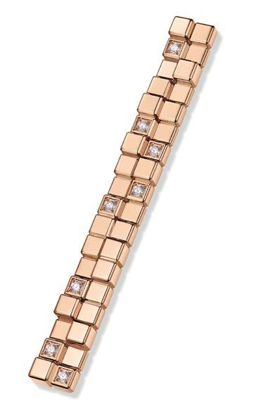 A series of bracelets and a versatile brooch also revisit the collection’s architectural codes. Meanwhile, the Asscher-cut diamond finds a bold new expression in two standout creations. One ring showcases an emblematic Ice Cube design: two parallel bands of 18-carat ethical white gold set with brilliantcut diamonds, joined by a striking 3-carat Asscher-cut diamond, positioned diagonally.