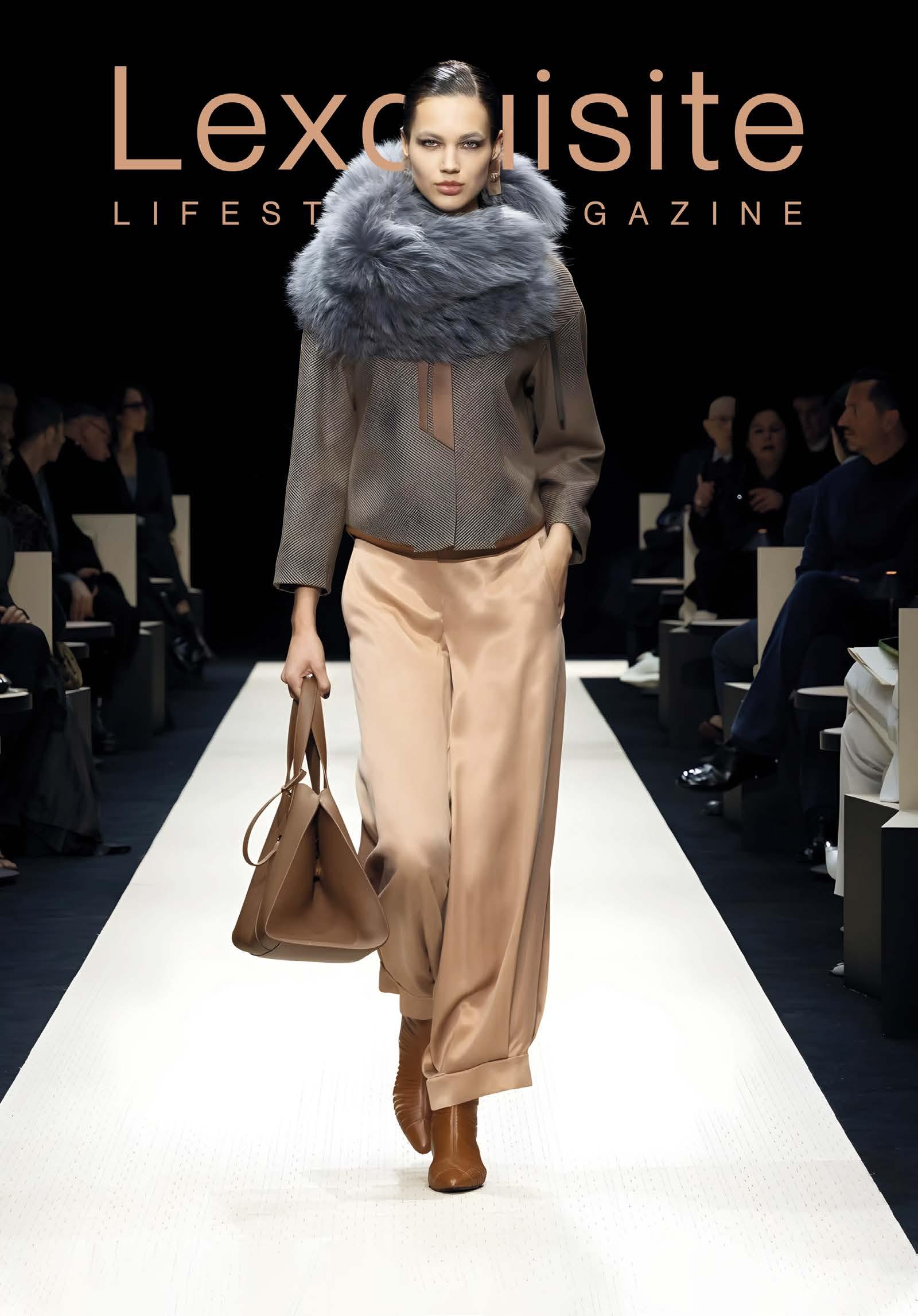 Las prendas adoptan sus característicos tonos volcánicos y brillos minerales: tonos beige arena y dorados, marrones profundos que se desvanecen en verde, reflejos azul cuarzo y todas las tonalidades de gris. Los tejidos son suaves pero sustanciosos al tacto: terciopelo, cachemir, seda jacquard. Los trajes de pantalón de seda fluyen con naturalidad, los abrigos se deconstruyen y las chaquetas destilan una elegancia impecable. Para la noche, delicados bordados adornan vestidos fluidos. Bolsos suaves y zapatos planos, diseñados para pasos ligeros pero seguros, transmiten una confianza innata.