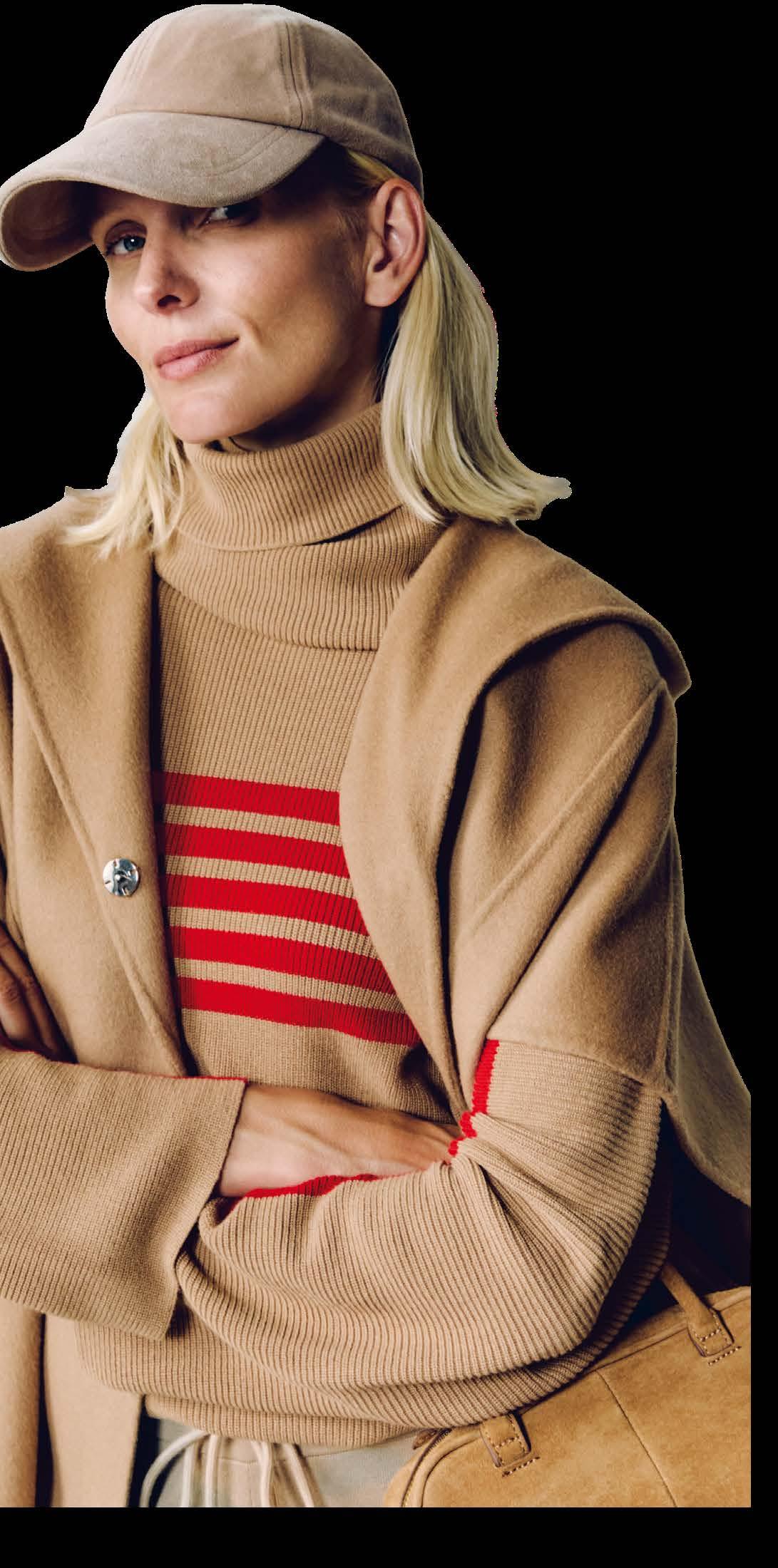 The colour palette plays with harmonious contrasts, from deep tones to camel, from stripes to the energy of drawstring detailing. A collection conceived to blend freedom of movement with style, seamlessly accompanying every moment of the day.