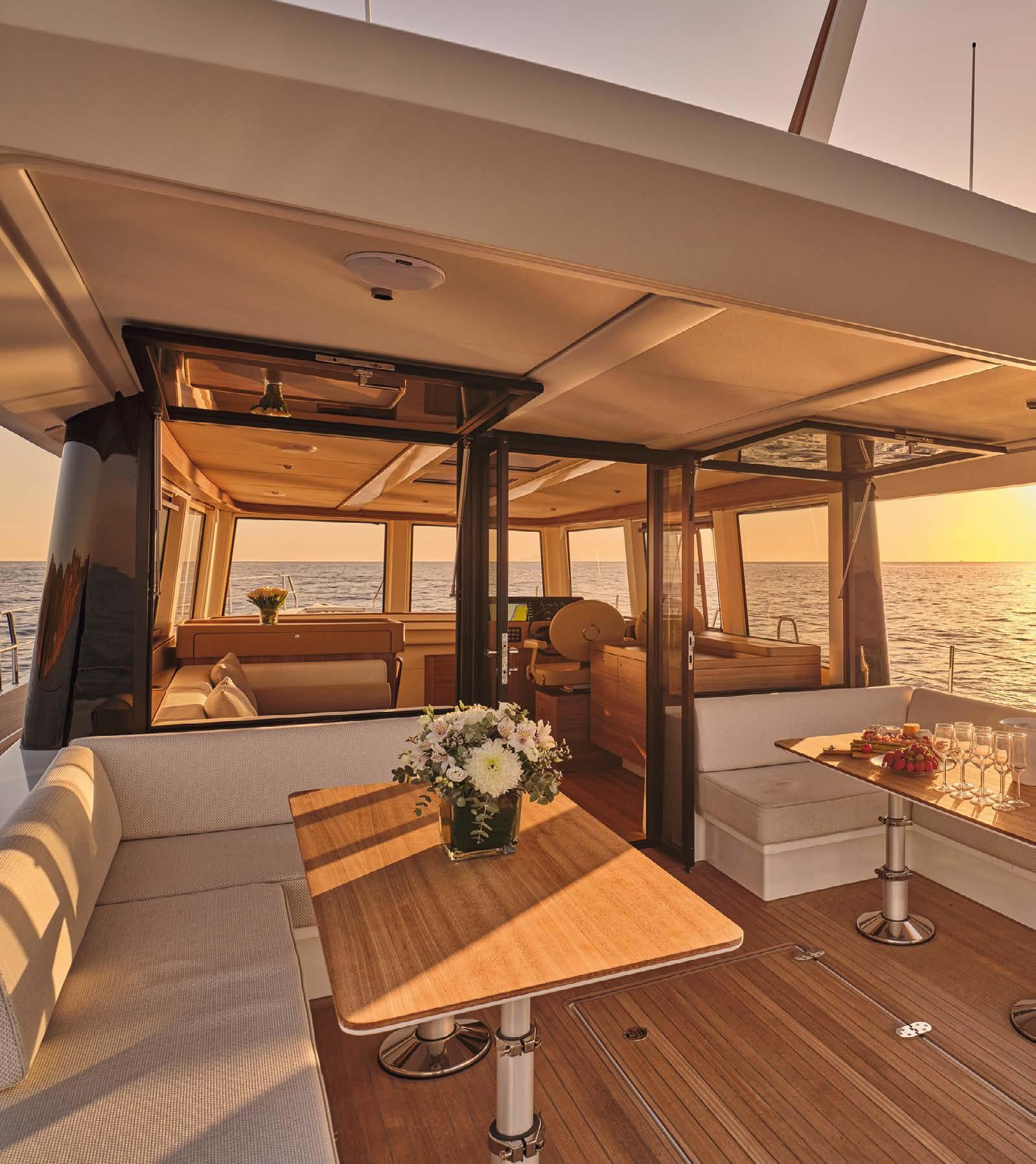 Today, Omikron Yachts produces 12 units per year of its first series model-the OT-60, introduced as the “sailing yacht without sails”-alongside the Argo 54, a forward-looking concept of a sustainable super sailing yacht.