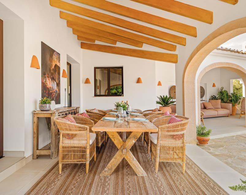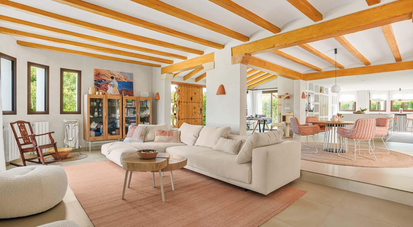 En el interior, la luz natural inunda cada espacio gracias a su orientación múltiple. El salón principal se abre al comedor y a una cocina de estilo ibicenco, completamente equipada. La vivienda está preparada para albergar tres dormitorios y tres baños si se desea. Arriba, la master suite cuenta con vestidor, baño en suite y terraza privada con vistas al mar y al Montgó. La vivienda dispone de paneles solares, domótica, aire acondicionado, garaje doble y cocina exterior.