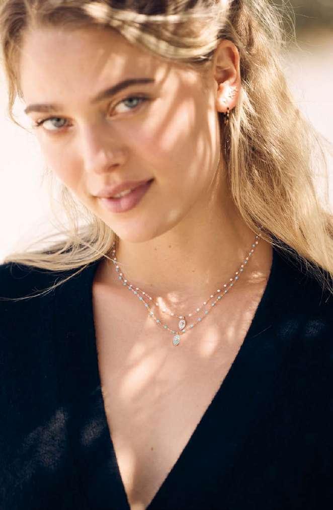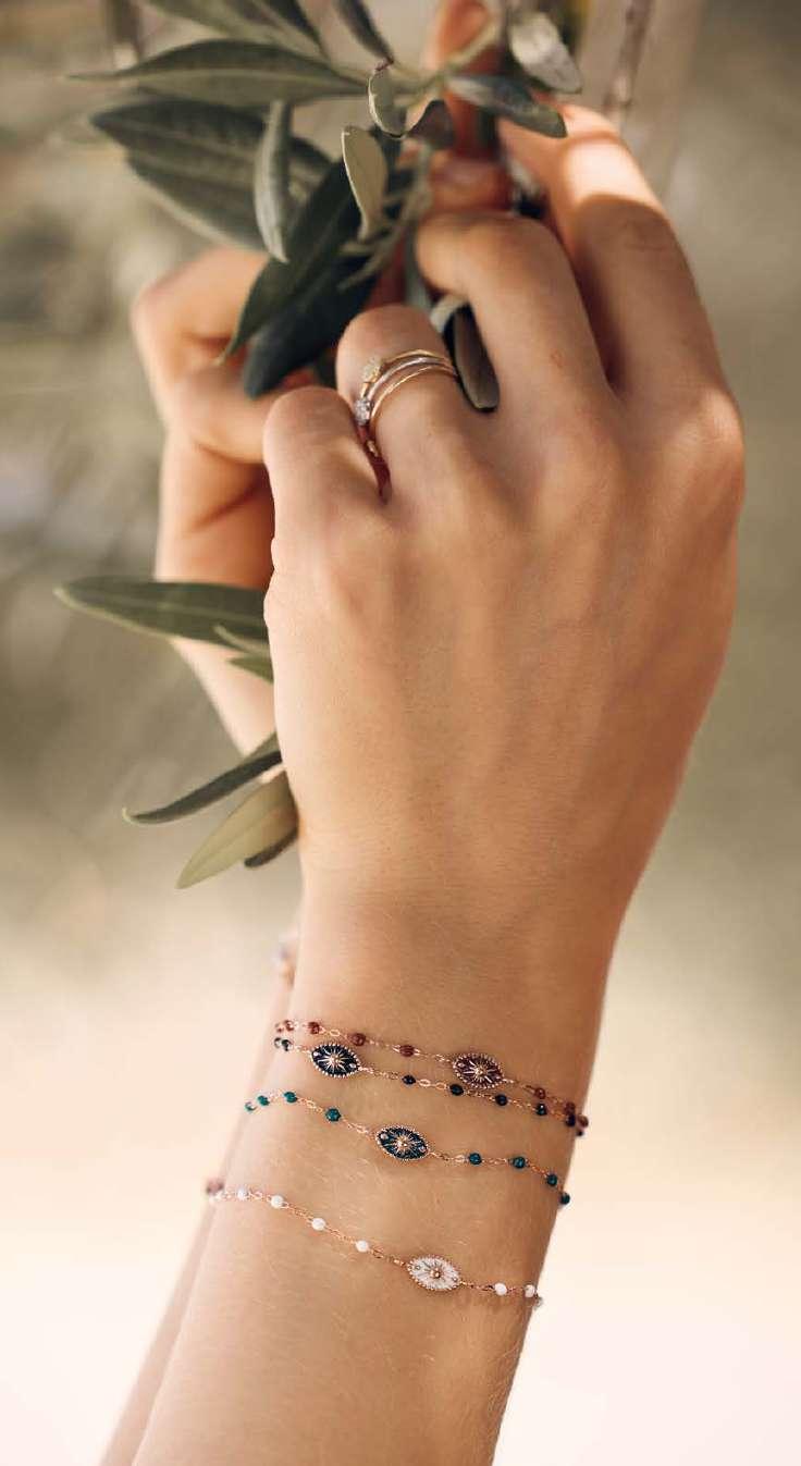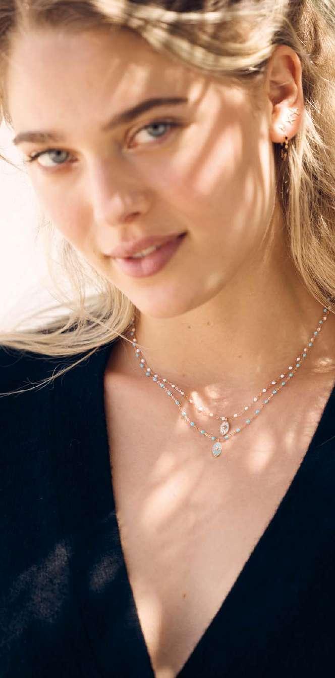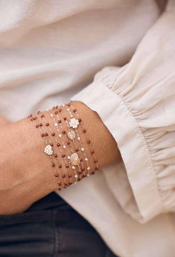 Madonna pendants and other lucky charms can be easily added to Gigi and Mini Gigi bracelets and necklaces. Pink flamingos, suns and crosses evoke Saintes-Mariesde-la-Mer. “This also symbolises our faith in optimism, beauty and the simplicity of existence.”