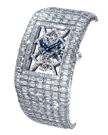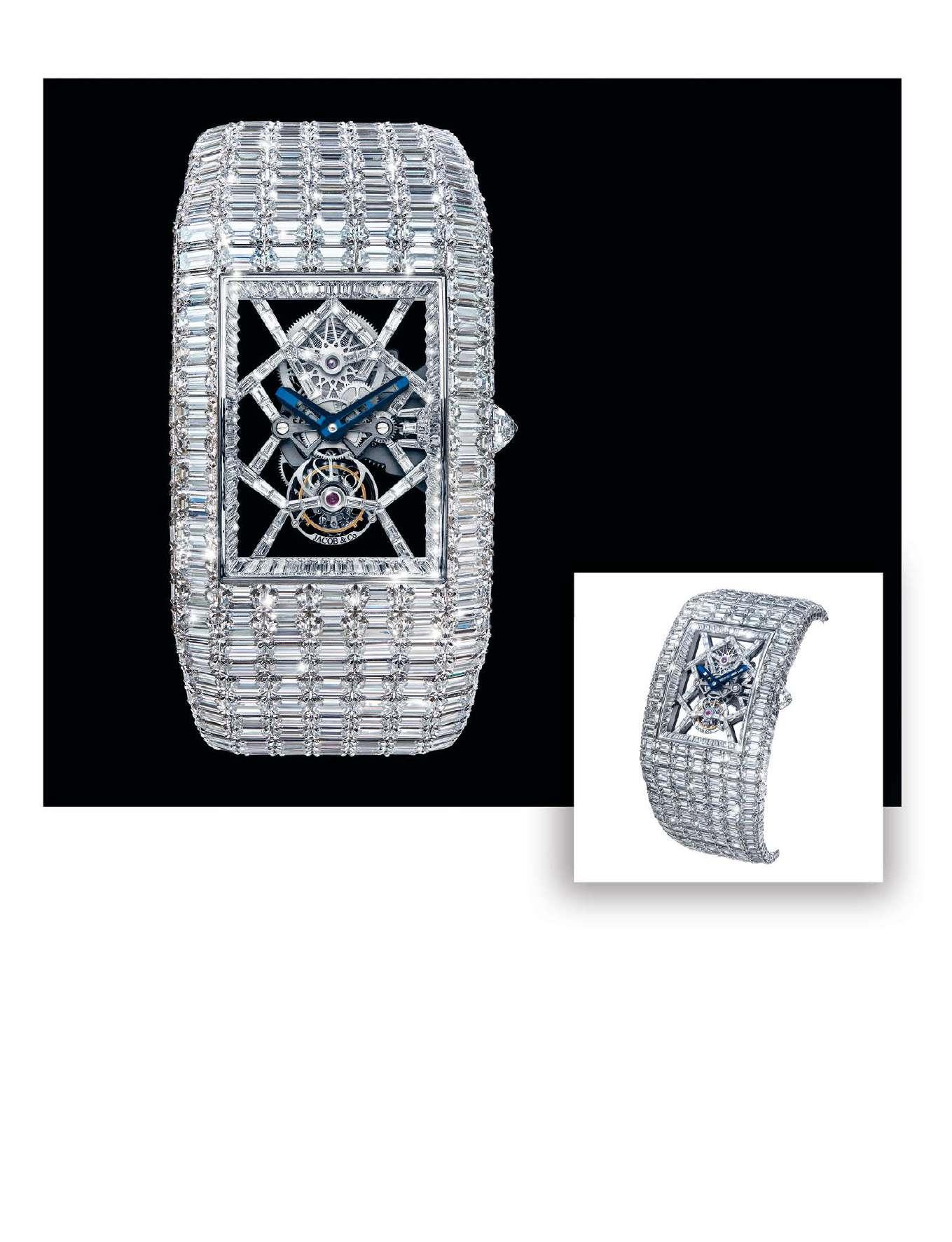 With the launch of the first Billionaire in 2015, the Jacob&Co. manufacture began an extremely limited series of exceptional timepieces, characterized by their hand-wound skeletor tourbillon, their white gold case and bracelet set with 260 carats of emerald-cut diamonds, and a price that makes them an icon of extreme luxury, reserved for very few owners. Different interpretations, generally limited to a single piece, have reinforced their image as one-of-a-kind. The image shows a Billionaire III.