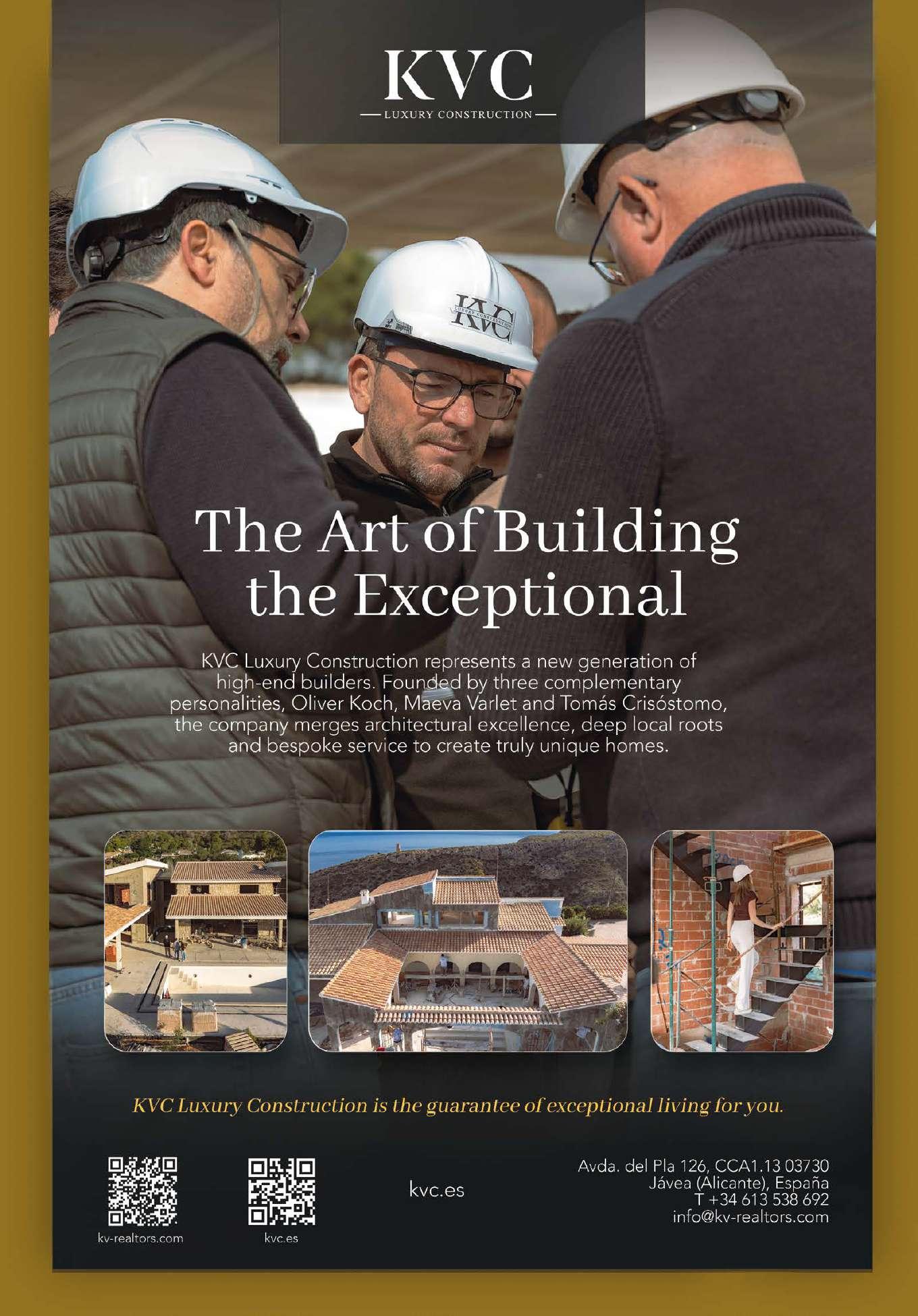 On the Costa Blanca, KVC Luxury Construction redefines luxury with a personalized approach to each project. Founded by Oliver Koch, Maeva Varlet, and Tomás Crisóstomo, the company combines experience, aesthetic sensibility, and tradition to create unique residences, distinguished by its philosophy of authenticity, quality, and precision, ensuring that each villa is a true reflection of its owners.