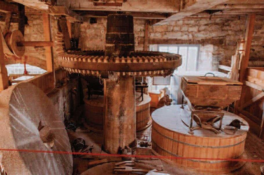 An exclusive guided tour with one of the knowledgeable volunteer millers is the best way to experience the Town Mill You will visit all three floors of this historic building and your guide will talk about the history, restoration and present day working of the mill You’ll even get to see the working water wheel in action!