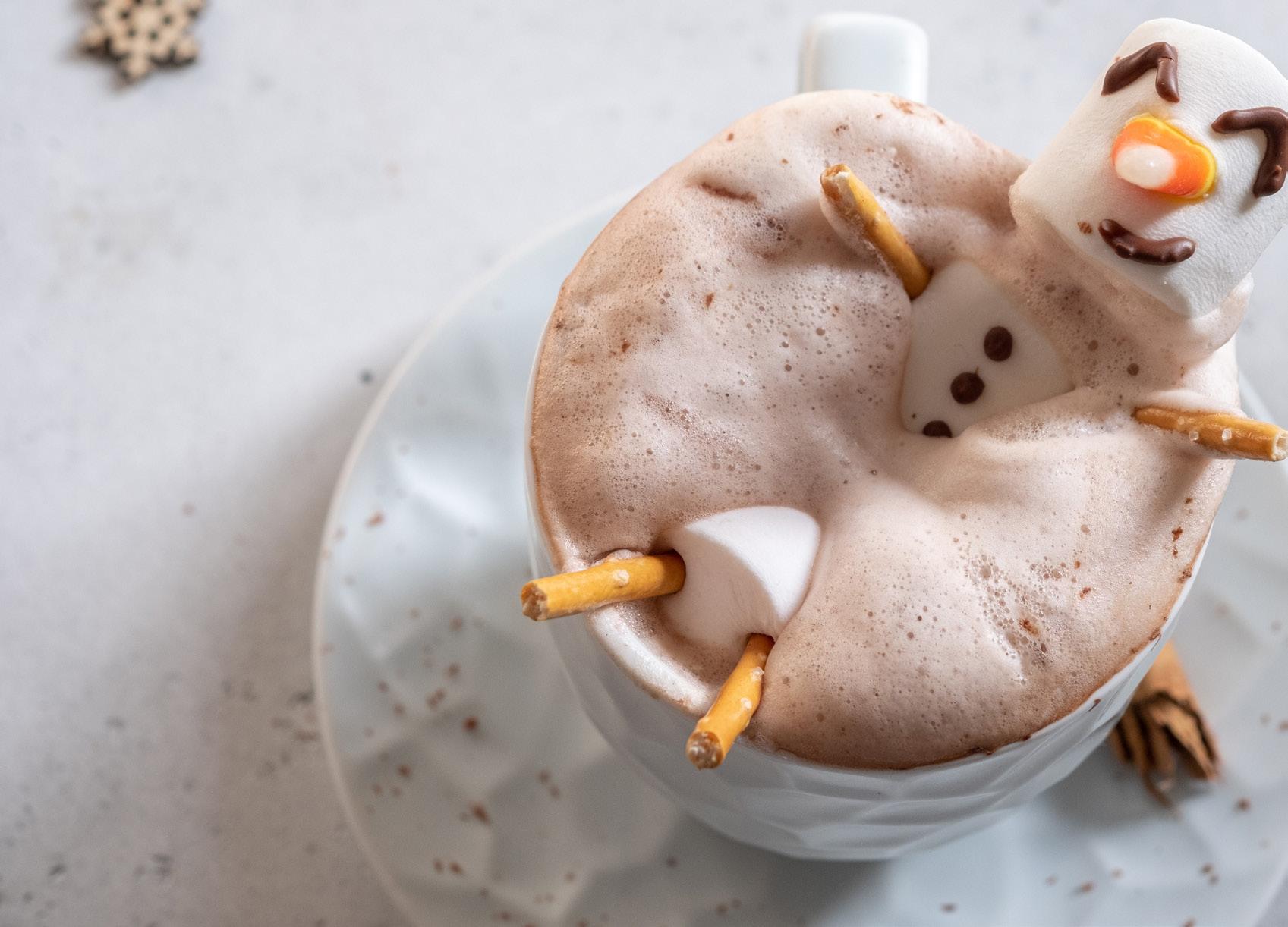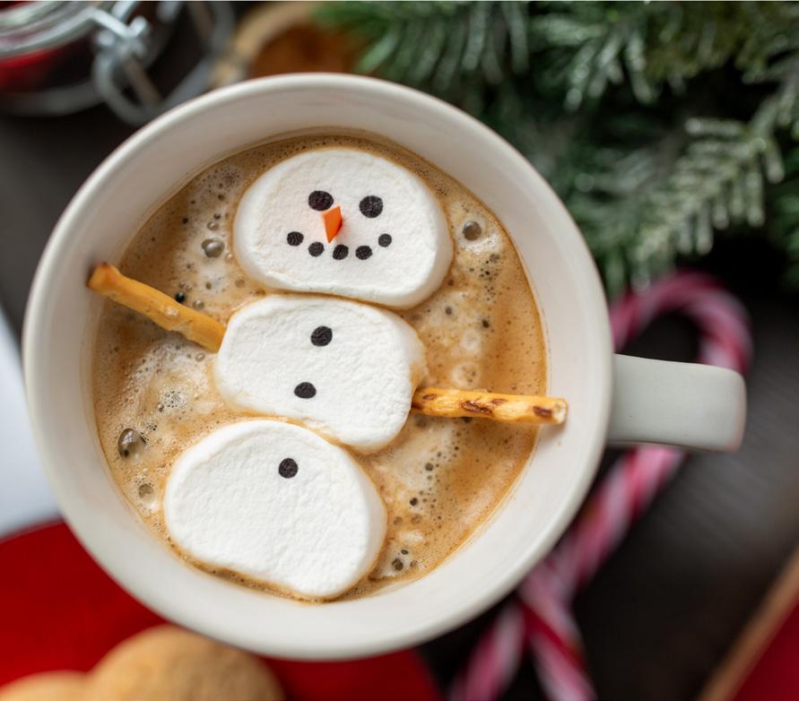 3. Prepare your favorite hot chocolate recipe and set snowman on top. Change the orientation of your marshmallows for some fun variation. Enjoy!