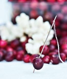 Sew a garland of popcorn and cranberries, in any pattern you like. Place a knot after the last piece.