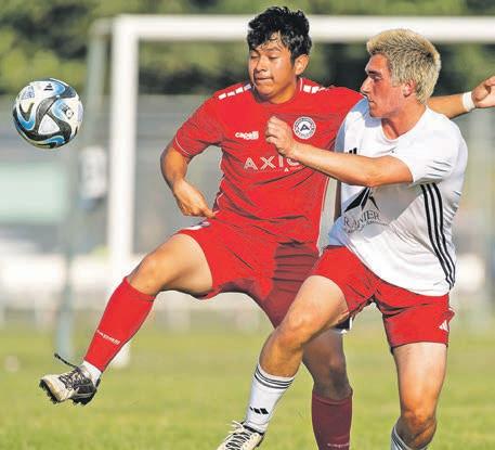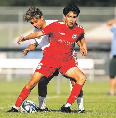 Lynden High School’s Leo Orozco, left contends for a loose ball against Mt. Rainier in the Washington Cup Tournament.