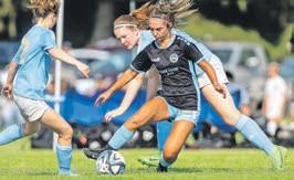 Ferndale High School’s Audrey Kallin, above, holds o a Bellevue United player.