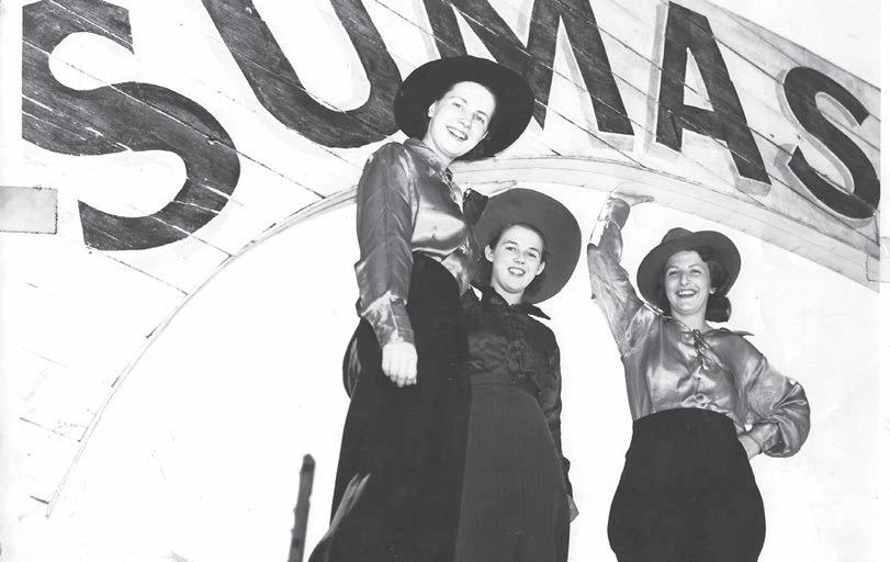 Right: The royalty for the 1937 Sumas Rodeo were, from left, Alice Tumath Lapp, Caroline Thomas Yurovchak and Barbara Clausen Cyr. Yurovchak was 20 at the time, said her photo supplying daughter, Mary Lou Jones. (Courtesy photo/Mary Lou Jones)