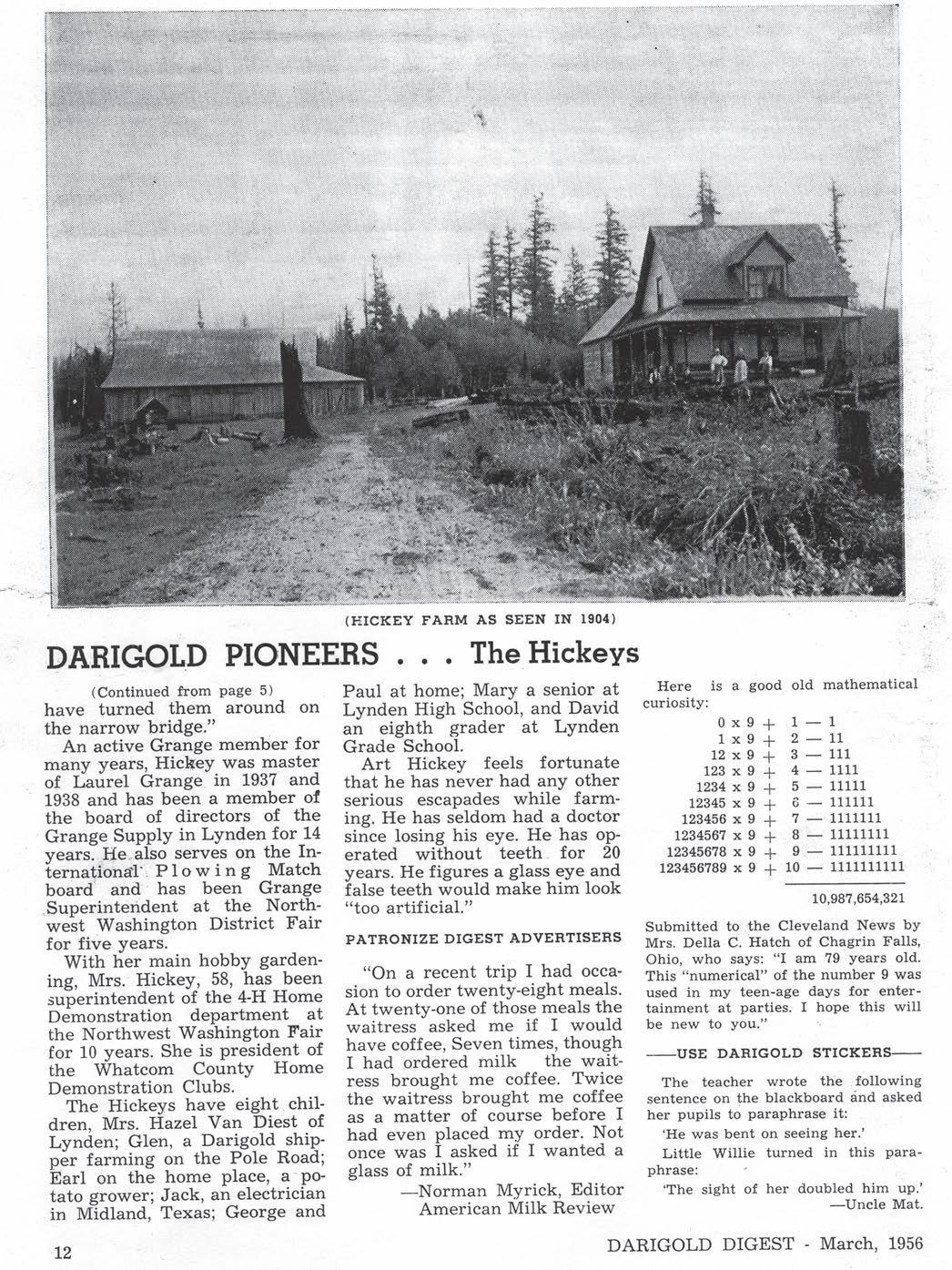 In March 1956, Arthur Lake Hickey, along with his faithful wife Edith, would be featured as “Darigold Pi oneers” in the Darigold Di gest publication for mem bers of the cooperative. is feature is reprinted in its