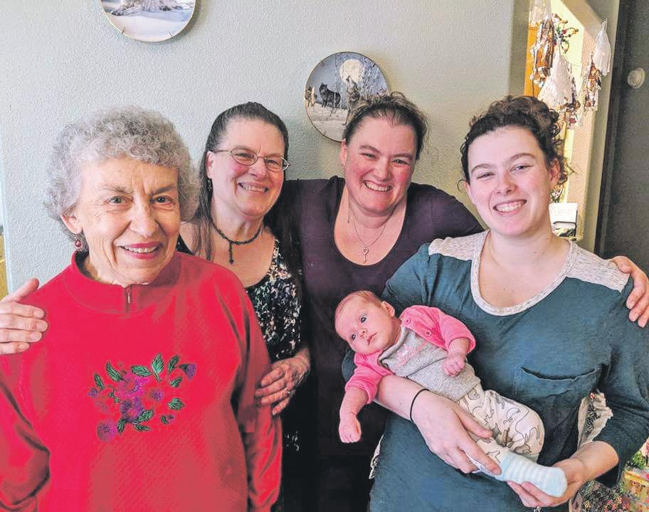 Five generations of the Hanowell family in Whatcom County. Pictured from left are Pat Hanowell, Dixie Lane, Erica Rollins and Racquel Muncy, who is holding Brielle Muncy. (Photo courtesy Racquel Muncy)