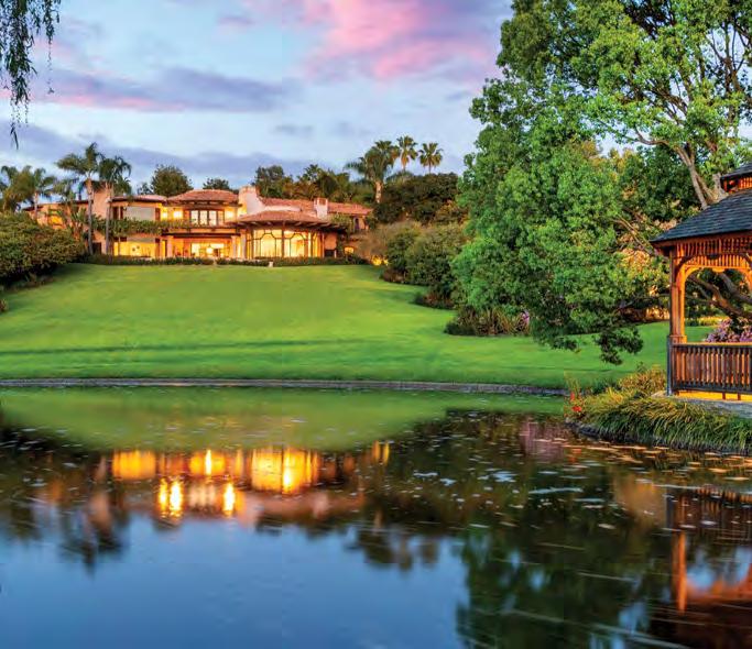 Located within the prestigious Bridges of Rancho Santa Fe, this rare single-level custom estate spans two premium lots and captures sweeping panoramic golf course views. Timeless architecture and refined finishes create seamless indooroutdoor living throughout. A grand entry opens to elegant interiors flowing to resort-style grounds featuring an infinityedge pool overlooking the 10th hole. The primary retreat offers a private sanctuary, while an executive office and wine cellar add elevated functionality. A detached guest house with its own yard and putting green completes this exceptional cul-de-sac offering with access to world-class amenities.